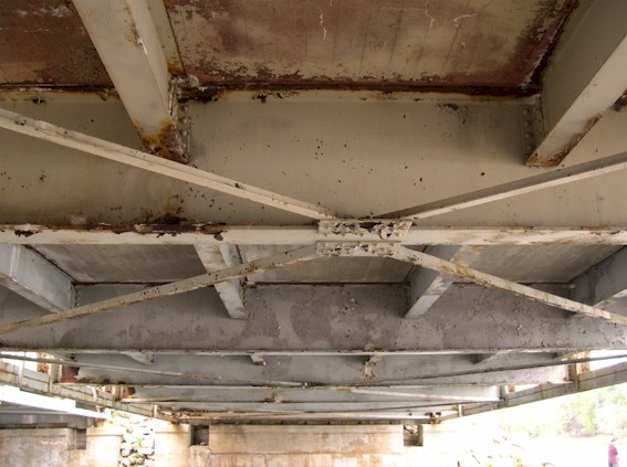 Right - Looking underneath the northern Landon Bay Bridge, which now carries only the bicycle path. This structure is not as well maintained as the south span,