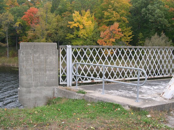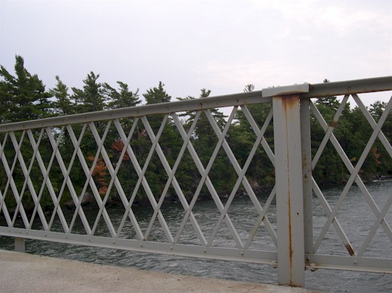 Left - Concrete railing between the twin Landon Bay Bridges on Thousand Islands Parkway.