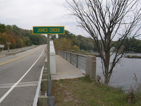 Left - Sign marking Jones Creek on the Thousand Islands Parkway near Brockville.
