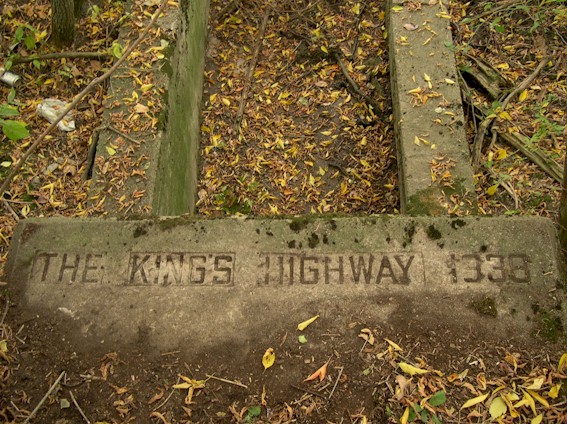 Left - Inscription on culvert on Hwy 2S near Gananoque - "THE KING'S HIGHWAY 1938".