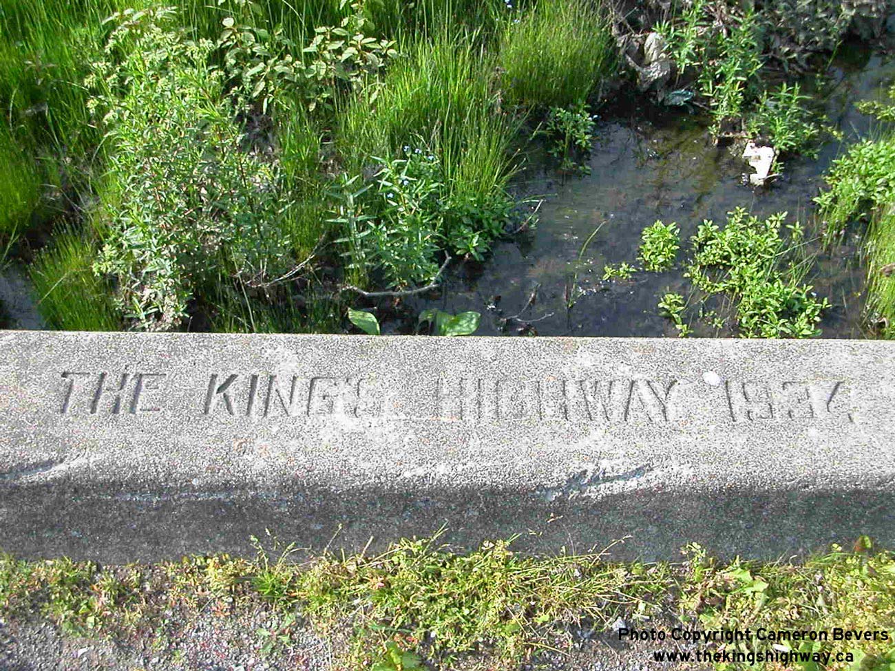 Left - Culvert inscription on Former Hwy 3C (known today as Dominion Road) near Ridgeway - "THE KING'S HIGHWAY 1934". See an