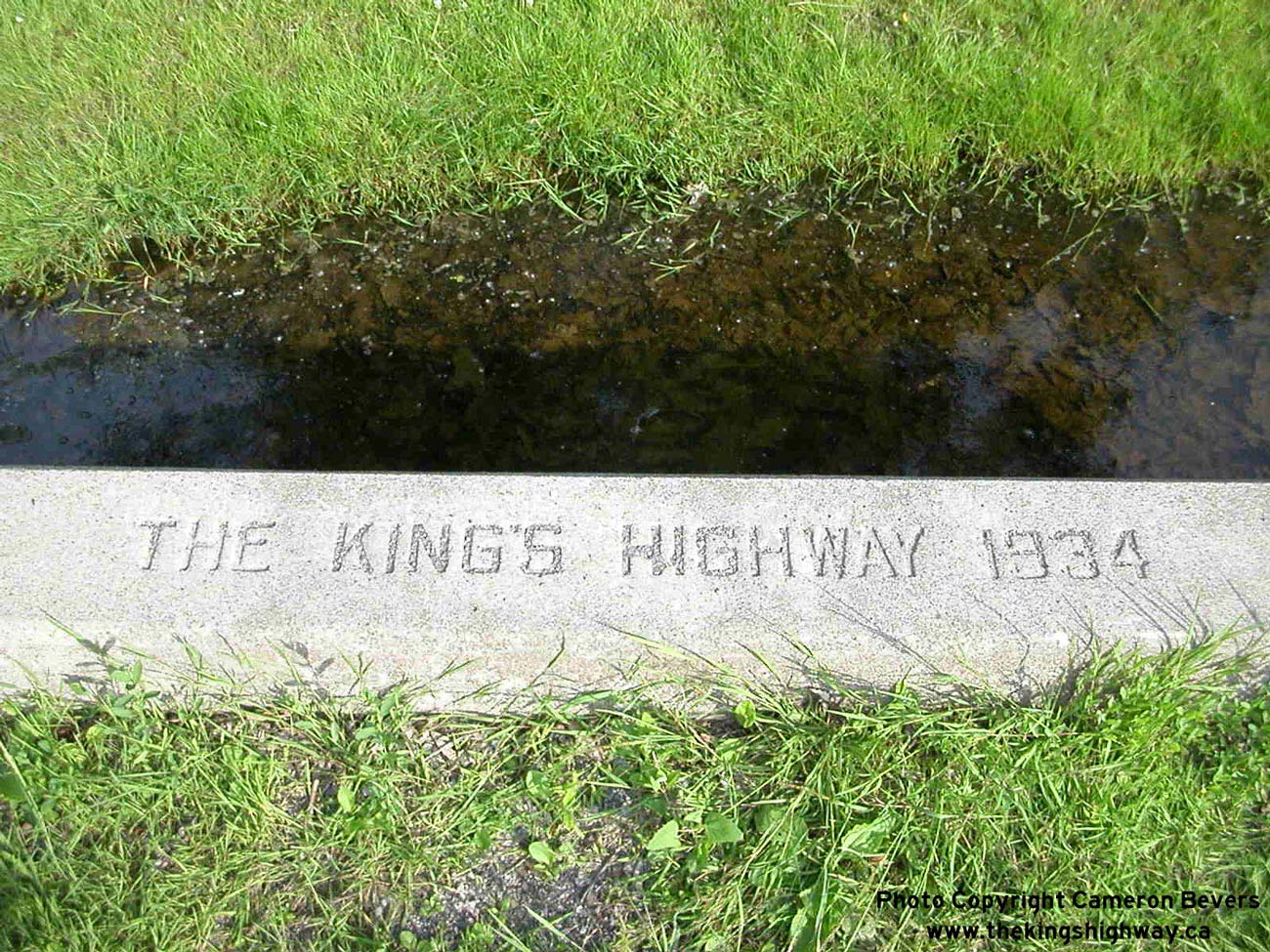Enlarged Photo Here. (Photograph taken on June 22, 2003 - © Cameron Bevers) Right - Culvert inscription on Former Hwy 3C in Fort Erie - "THE KING'S HIGHWAY 1934". See an Enlarged Photo Here. (Photograph taken on June 22, 2003 - © Cameron Bevers)