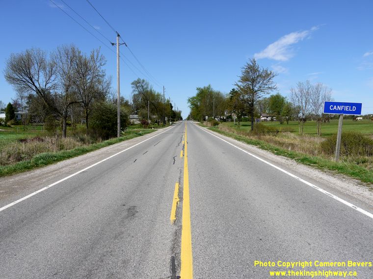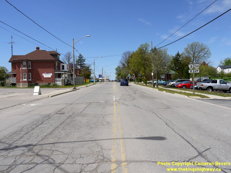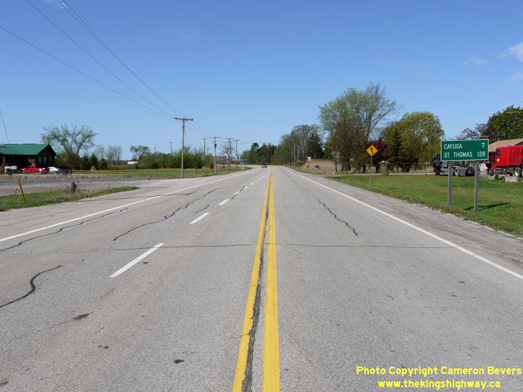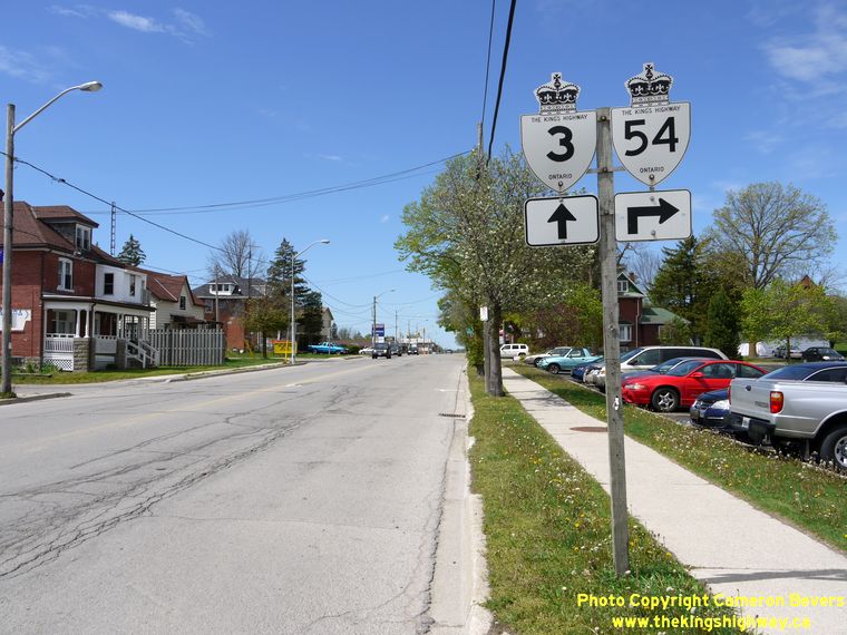 Left - Facing west along Hwy 3 towards the Hwy 54 Junction. From here, Hwy 3 continues west to Simcoe, while Hwy 54 turns northwesterly towards Brantford. See an