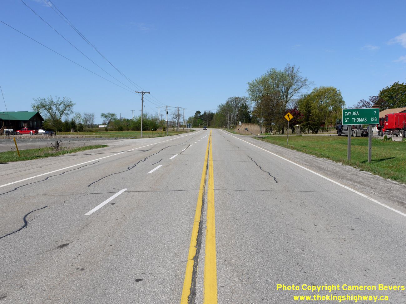 Left - Facing east along Hwy 3 towards Dunnville at the Hwy 56 Junction near Canfield. (Photograph taken on May 5, 2012 - © Cameron Bevers) Right - Facing west along Hwy 3 towards Cayuga from the Hwy 56 Junction near Canfield. (Photograph taken on May 5, 2012 - © Cameron Bevers)
