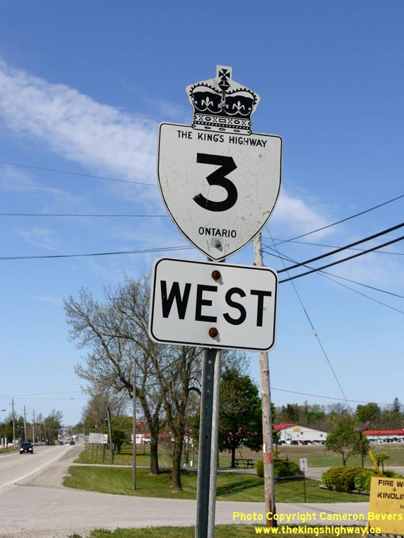 Above - An older King's Highway 3 sign near Cayuga. (Photograph taken on May 5, 2012 - © Cameron Bevers)