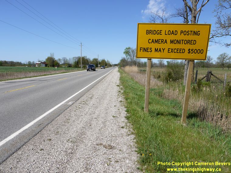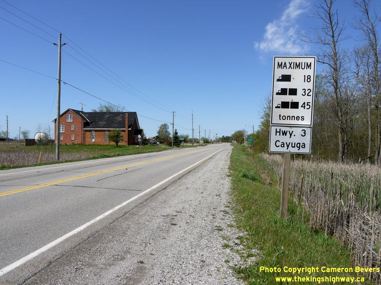 Left - Maximum axle load limit sign on Hwy 3 near Canfield. The aging Cayuga Bridge on Hwy 3 has presented somewhat of a barrier for heavy trucks. Trucks