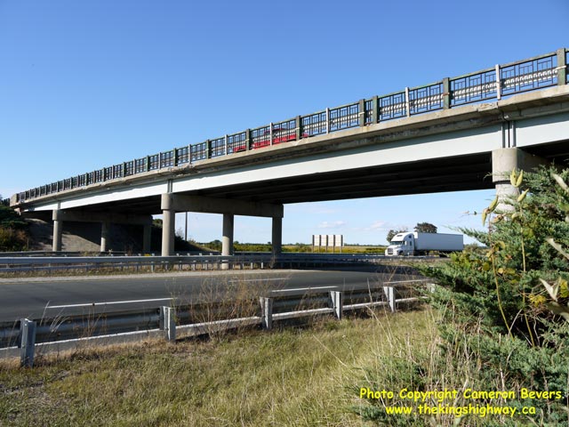 Left - Facing south across the Bloomfield Road Overpass at Hwy 401 in Chatham. (Photograph taken on September 14, 2010 - © Cameron Bevers) Right - Western side of the Bloomfield Road Overpass on Hwy 401 in Chatham. Structure completed in 1962. (Photograph taken on September 14, 2010 - © Cameron Bevers)