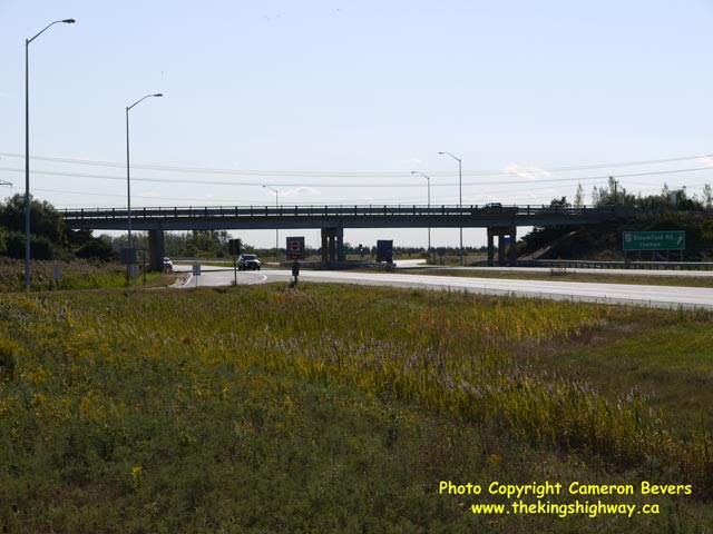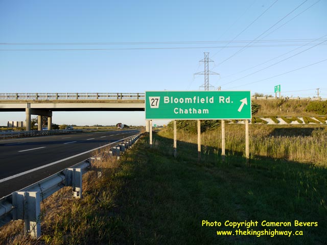 Left - Approaching the Bloomfield Road Interchange on eastbound Hwy 401 in Chatham. The Bloomfield Road Interchange is the first exit on eastbound