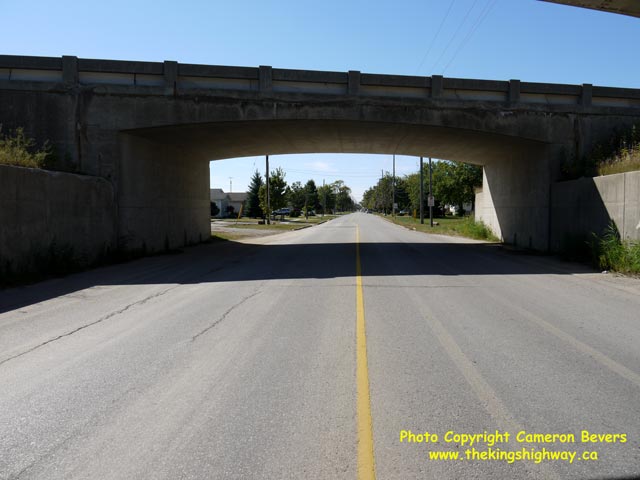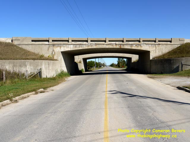 Left - Queen Street Underpass on Hwy 401 in Tilbury. Both Hwy 401 structures were completed in 1960. (Photograph taken on September 14, 2010 - © Cameron Bevers) Right - Northern side of the Eastbound Hwy 401 Structure over Queen Street in Tilbury. (Photograph taken on September 14, 2010 - © Cameron Bevers)