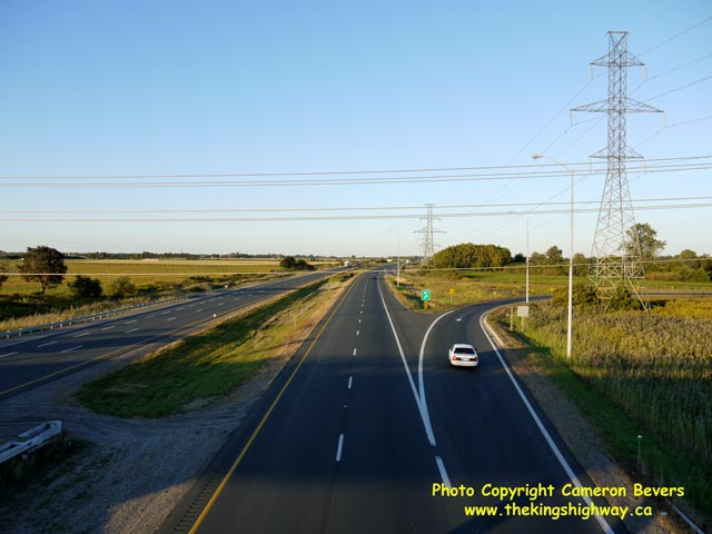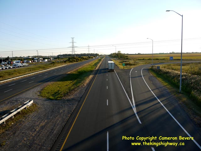 Left - Northwest quadrant ramps at the Hwy 2 & Hwy 401 Interchange east of Tilbury. The two ramps at the Hwy 2 Interchange also provide access