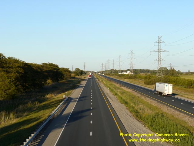 Above - Facing east along the westbound lanes of Hwy 401 towards London from the Charing Cross Road Overpass in Chatham. (Photograph taken on September 13, 2010 - © Cameron Bevers)