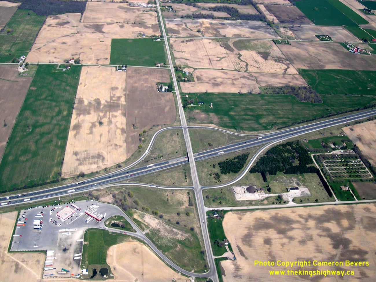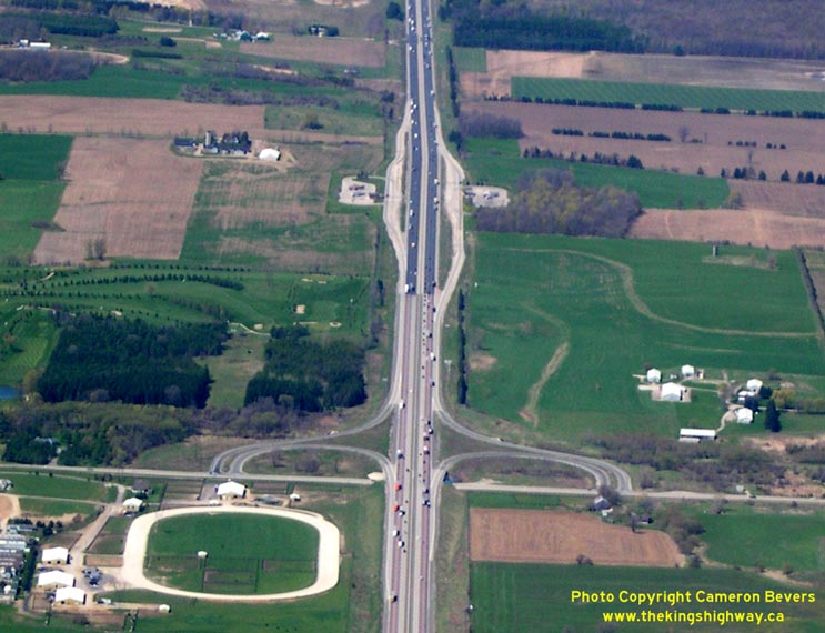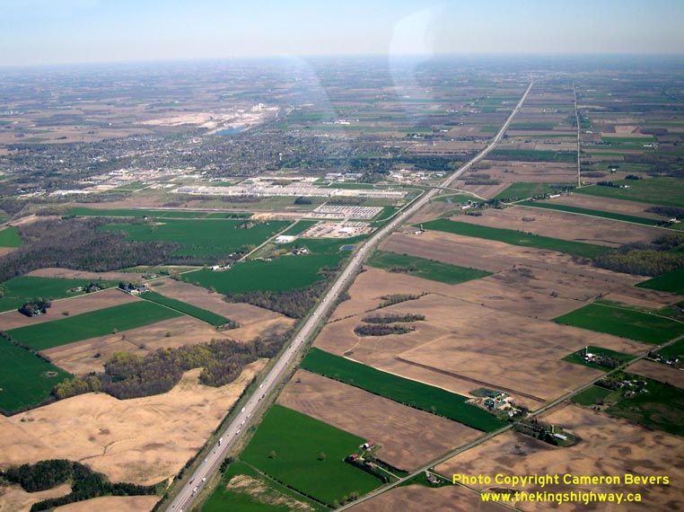 Enlarged Photo here. (Photograph taken on April 28, 2006 - © Cameron Bevers) Right - Aerial view of the Hwy 74 and Hwy 401 Interchange, facing northeast. (Photograph taken on April 28, 2006 - © Cameron Bevers) ![]()