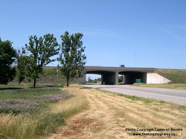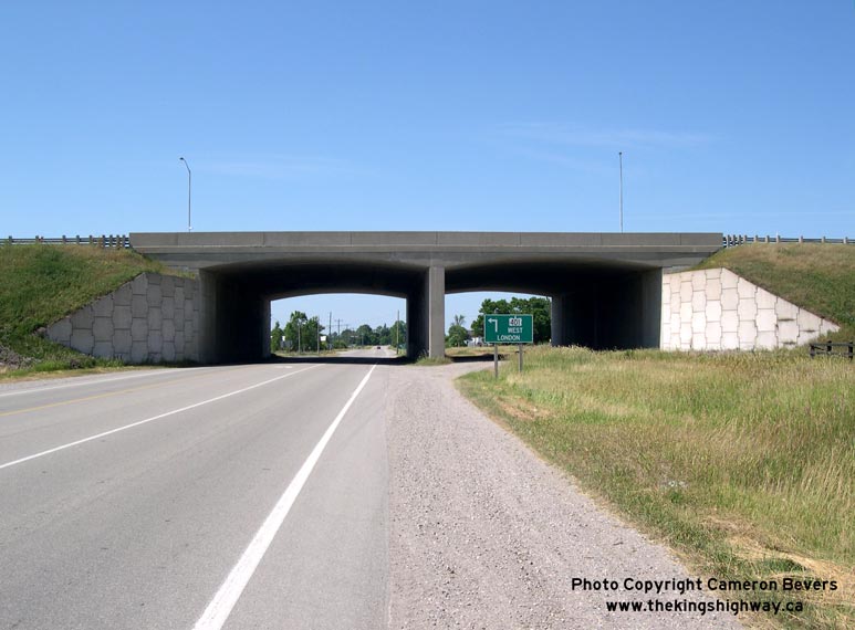 Enlarged Photo here. (Photograph taken on April 28, 2006 - © Cameron Bevers) Right - Close-up of the Putnam Road Interchange on Hwy 401, facing west. (Photograph taken on April 28, 2006 - © Cameron Bevers)