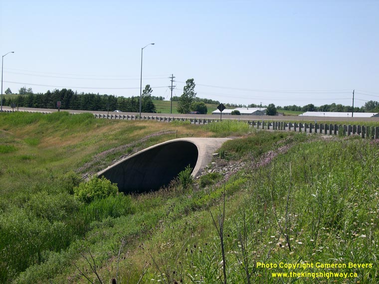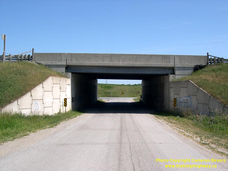 Left - Southern side of the Putnam Road Underpass at Hwy 401 near Ingersoll. (Photograph taken on June 24, 2007 - © Cameron Bevers) Right - Northern side of the Putnam Road Underpass. This structure is particularly interesting because it is both and road and railway grade separation. The railway passes below Hwy 401 directly beside Putnam Road. (Photograph taken on June 24, 2007 - © Cameron Bevers)