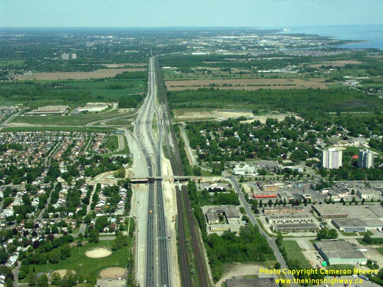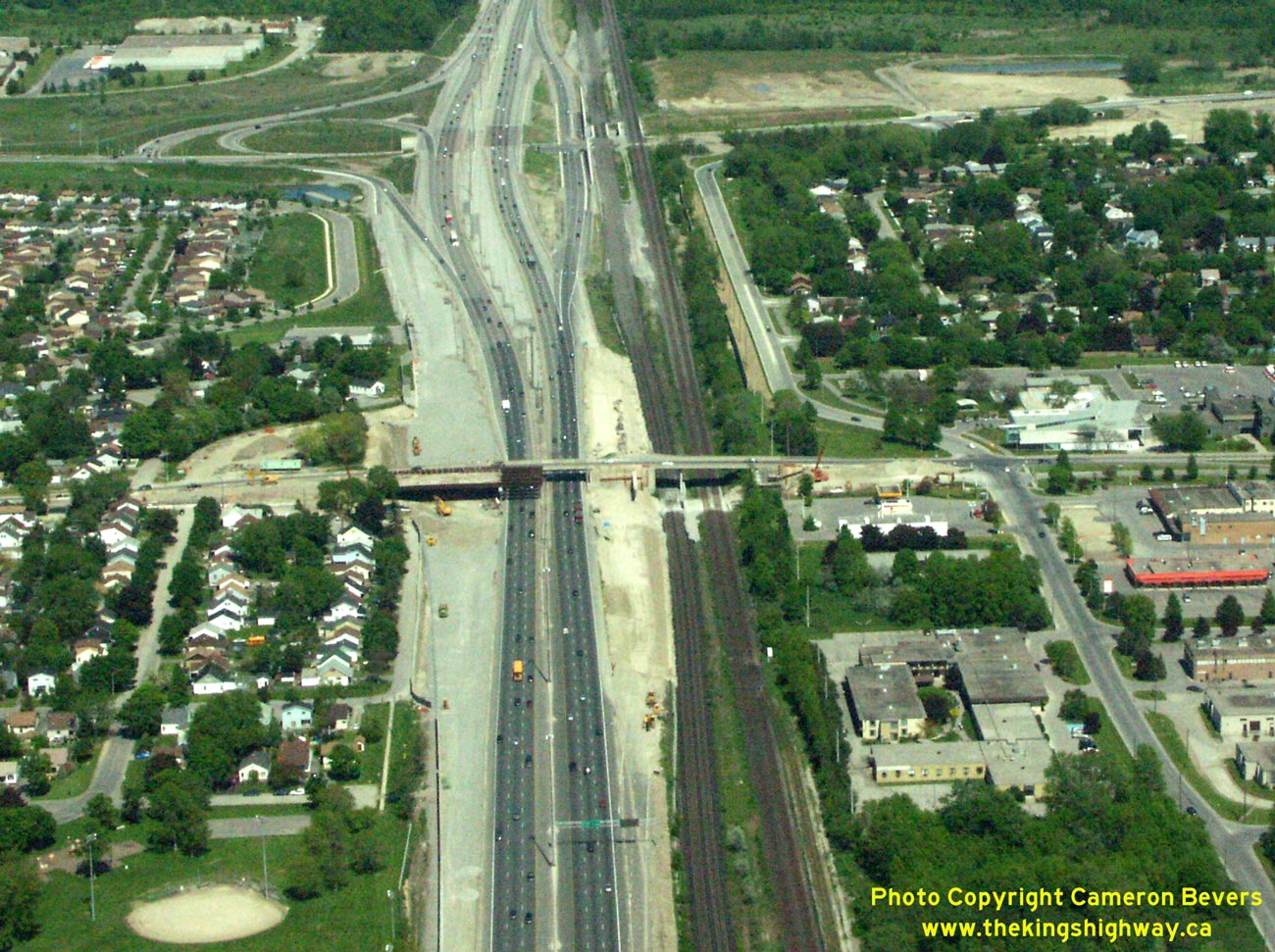 Enlarged Photo here. (Photograph taken on May 30, 2004 - © Cameron Bevers) Right - Aerial view of new Salem Road Interchange at Hwy 401, facing northwest. See an Enlarged Photo here. (Photograph taken on May 30, 2004 - © Cameron Bevers)