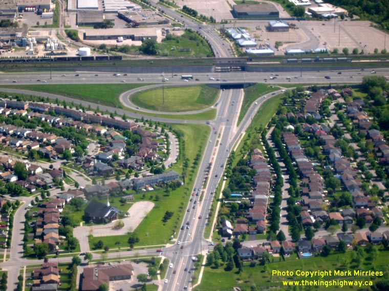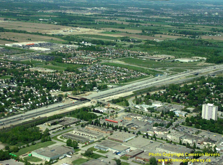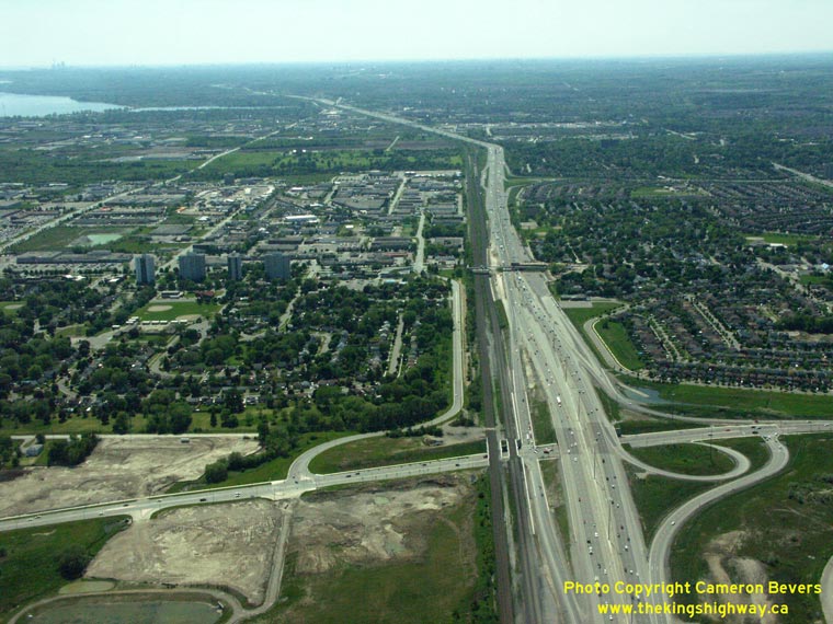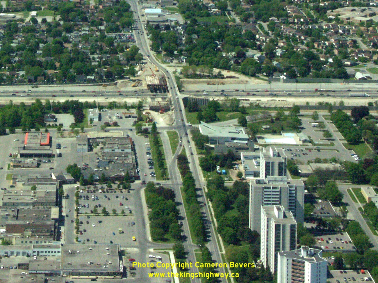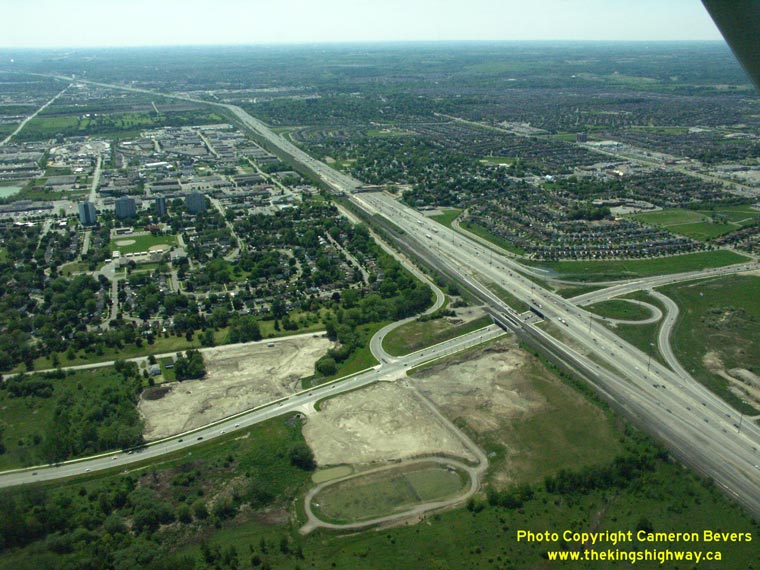 and the partial cloverleaf ramps on the northern side of Hwy 401 can be seen in this photo. See an