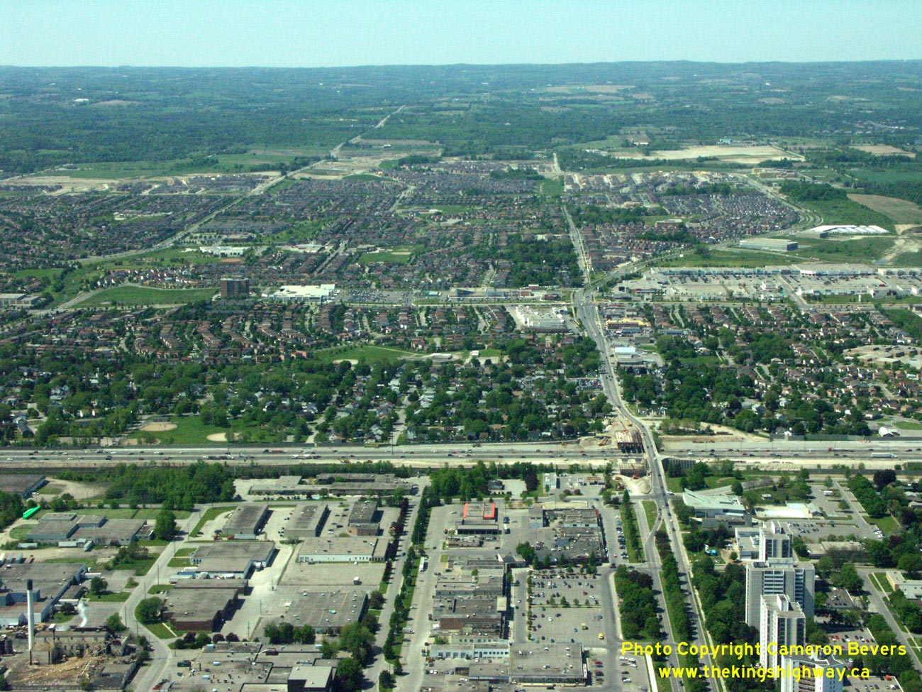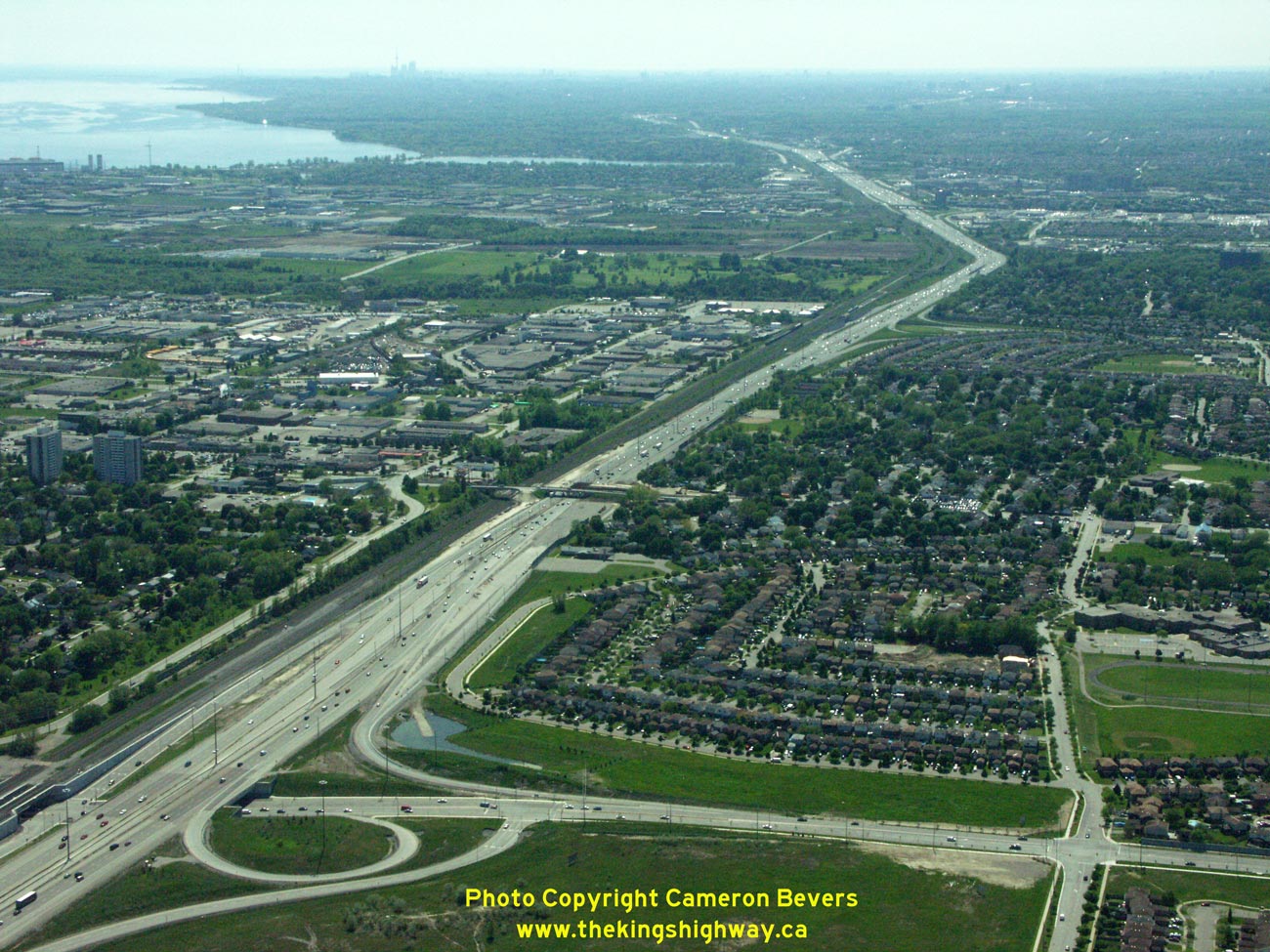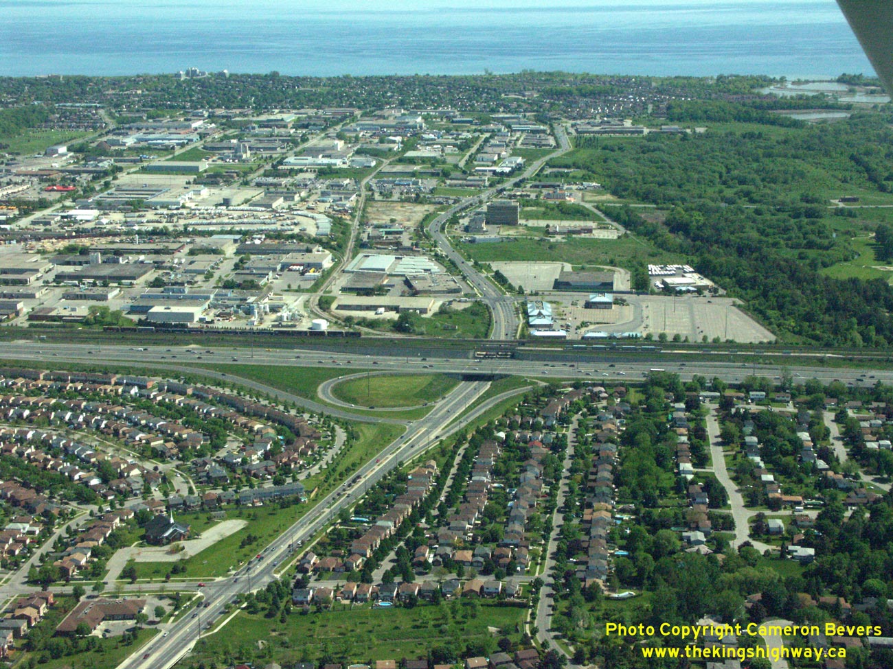 and the partial cloverleaf ramps on the northern side of Hwy 401 can be seen in this photo. See an