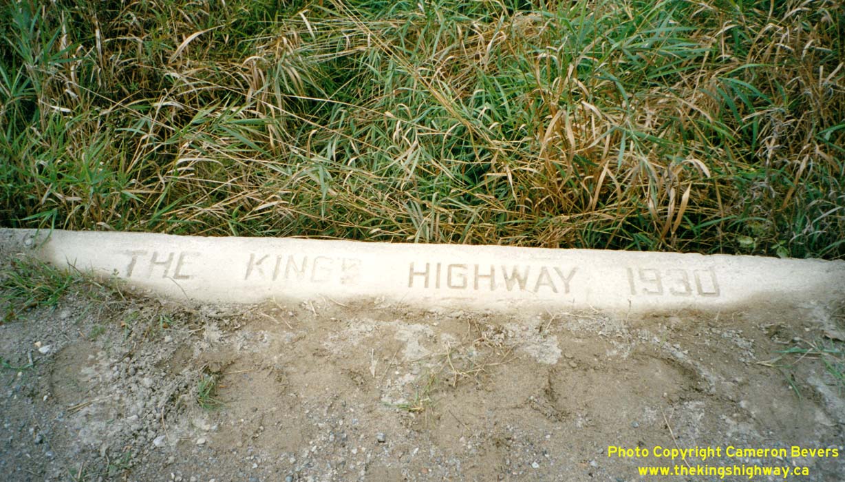 Above - Inscription on a concrete culvert on Old Hwy 12 (Hwy 48B) south of Beaverton - "THE KING'S HIGHWAY 1930". See an