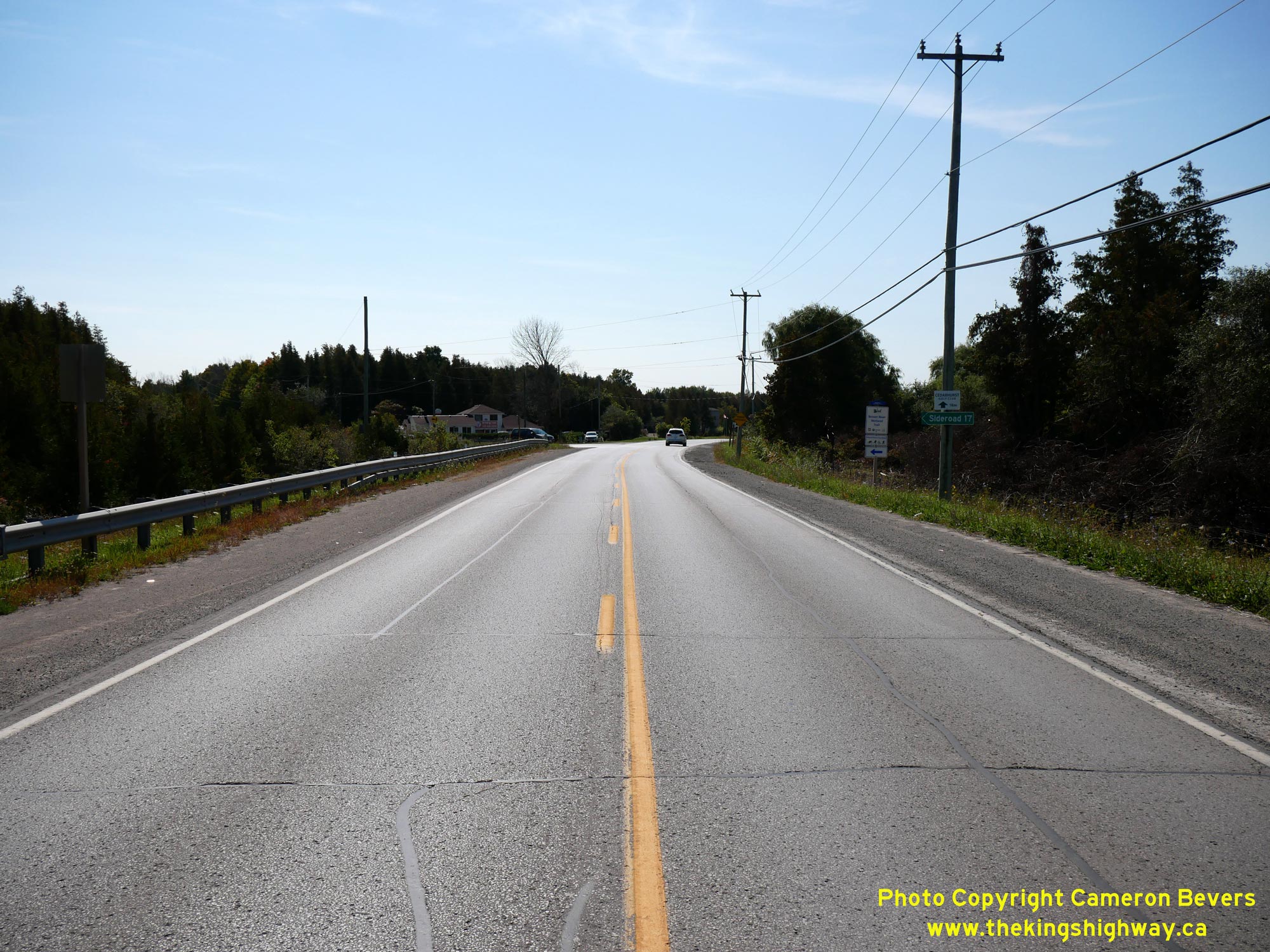 Left - Facing north along Old Hwy 48 (Durham Road 23) approaching Old Hwy 12 (Sideroad 17). While this former highway junction has been reconstructed since the