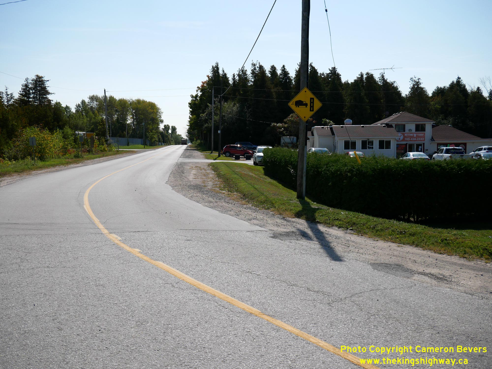Left - Facing south along Old Hwy 12 & Old Hwy 48 from the southern entrance to Beaverton from Concession Road 5. Note the innovative "shark's teeth"