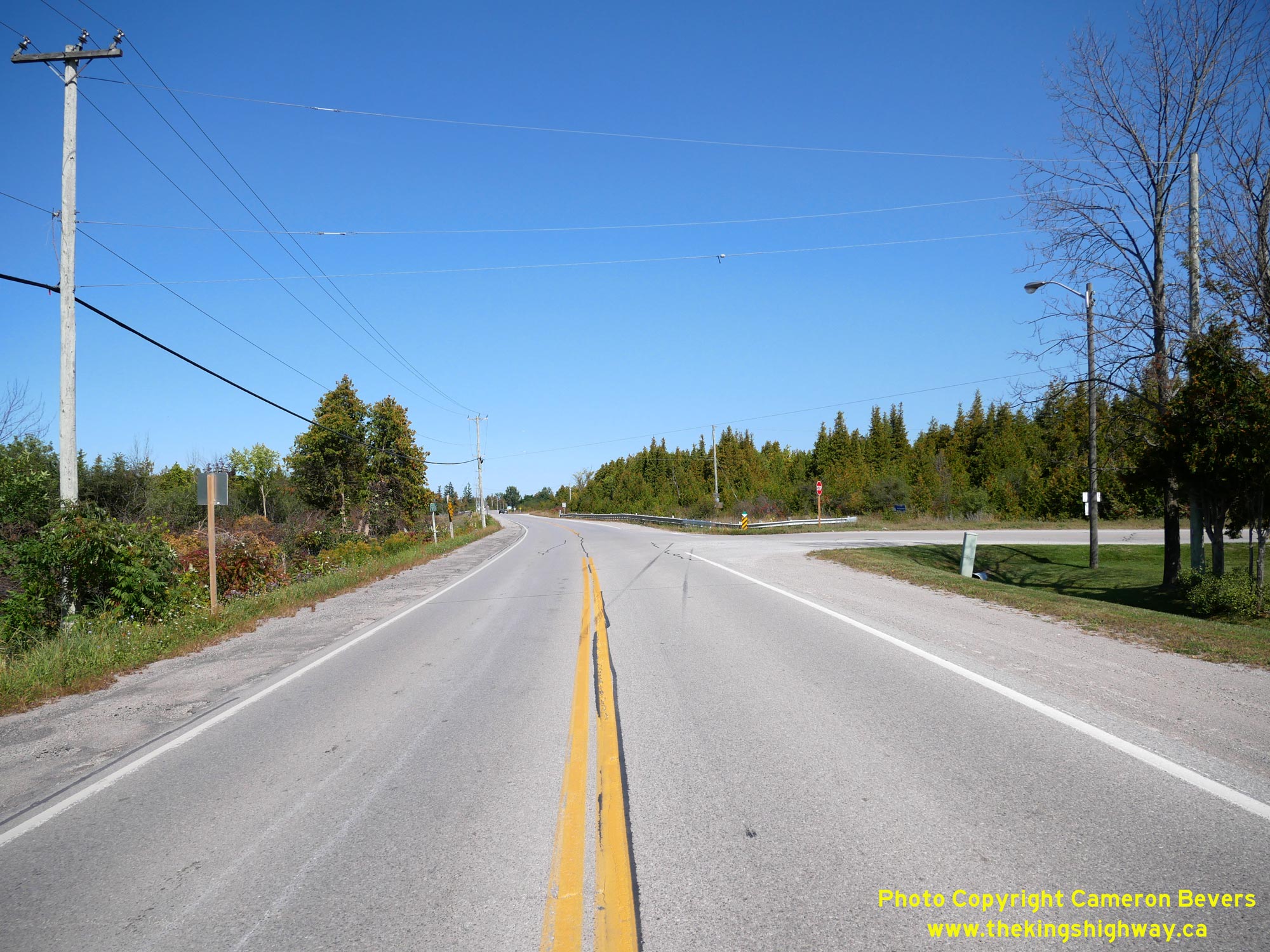 Left - View of the former Hwy 12 & Hwy 48 Junction, facing north. Today, Sideroad 17 curves to the left and connects to Old Hwy 48 (today's Durham Road 23)