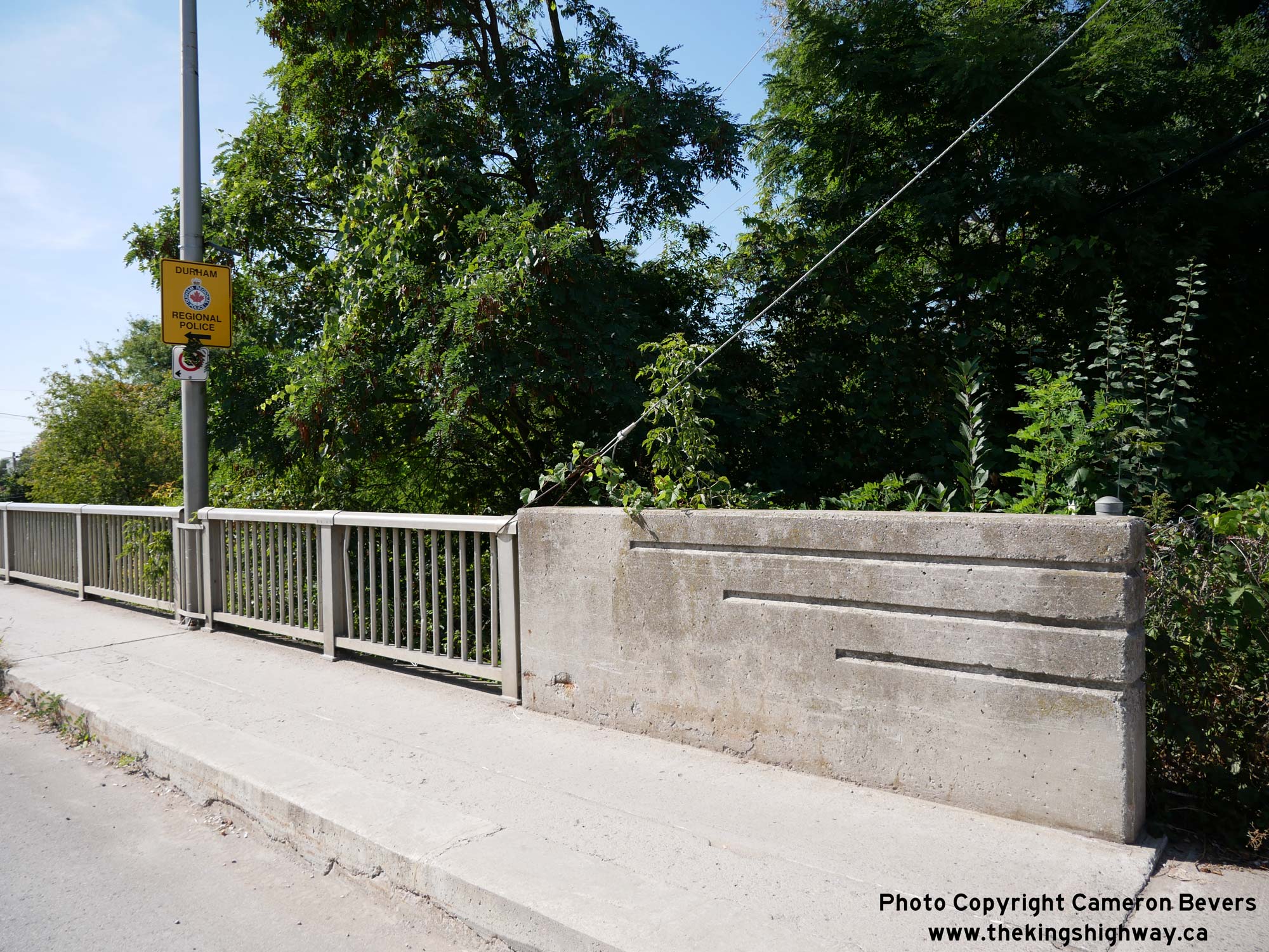 This concrete bowstring arch bridge was replaced with a new bridge in 1980 by the Regional Municipality of Durham. See an