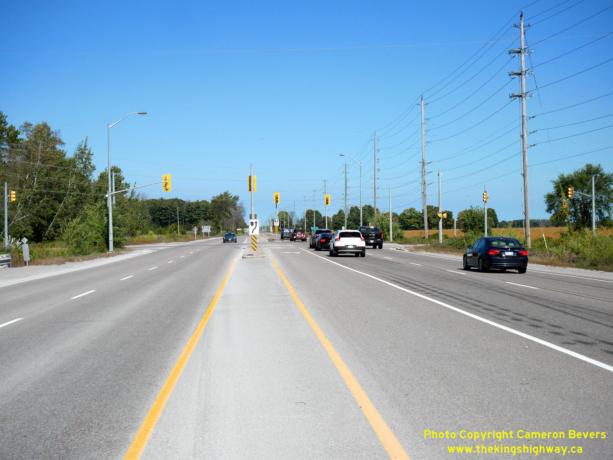 Enlarged Photo Here. (Photograph taken on September 22, 2023 - © Cameron Bevers) Right - View of Hwy 48 approaching the Old Hwy 12 Junction (Sideroad 17) near Port Bolster, facing north. Although it is now part of the Regional Municipality of Durham, this area of the province was originally part of the County of Ontario. This historical county, along with the County of Lincoln on the Niagara Peninsula, both disappeared entirely as a result of municipal amalgamation and restructuring done in the 1970s. See an Enlarged Photo Here. (Photograph taken on September 22, 2023 - © Cameron Bevers)