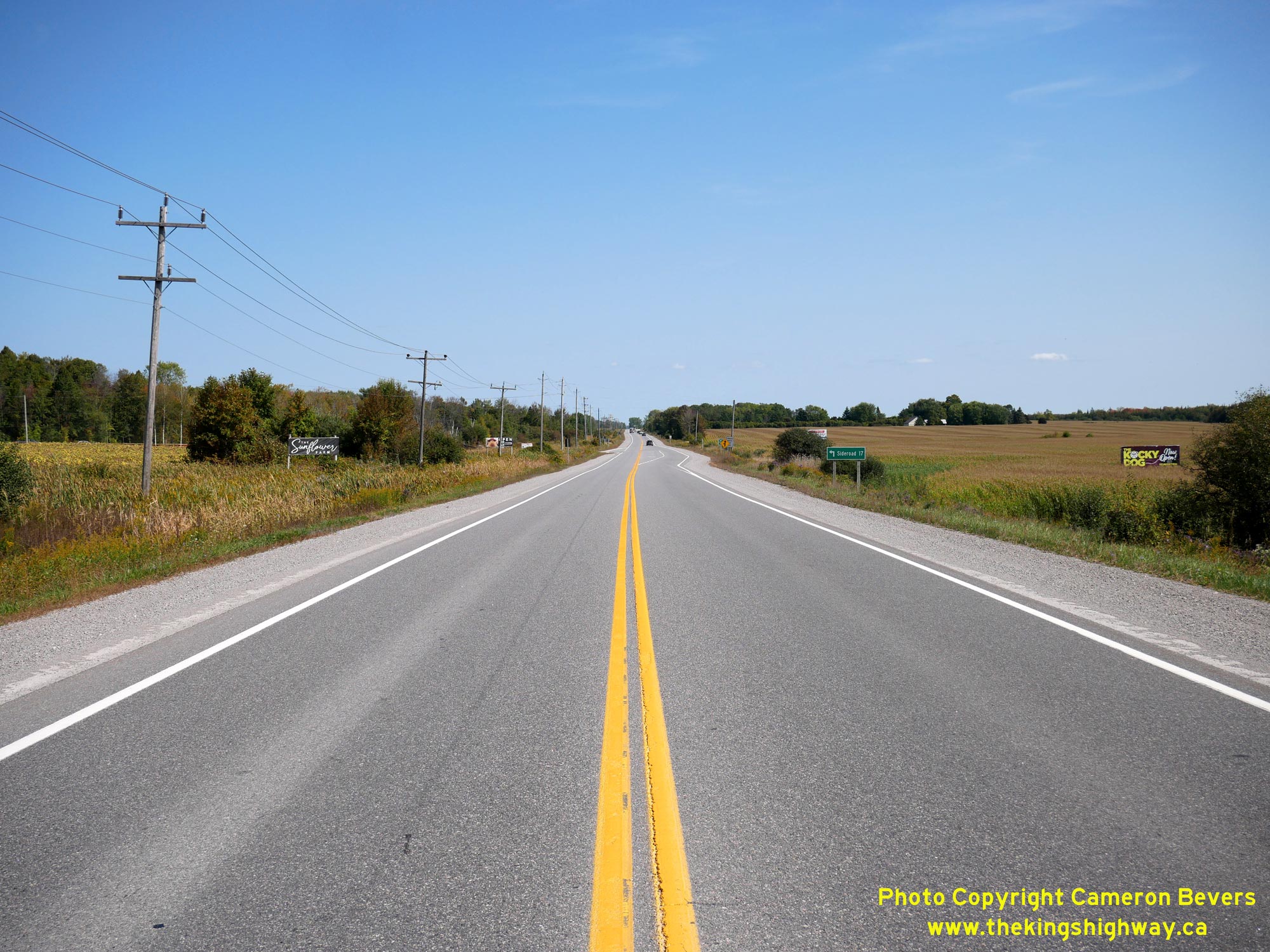Left - Facing south along Hwy 48 towards Sutton from Sideroad 17 (Old Hwy 12). Although the road ahead is known as Hwy 48 today, this road only became a
