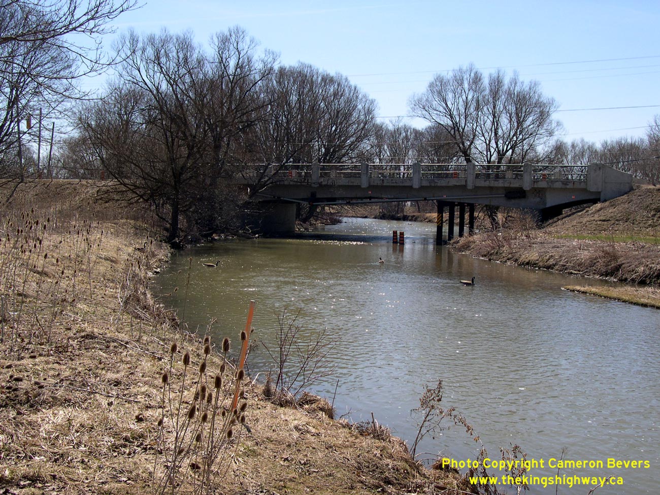 Enlarged Photo here. (Photograph taken on April 9, 2005 - © Cameron Bevers) Right - Northern side of Canagagigue Creek Bridge on Old Hwy 86 in Elmira. See an Enlarged Photo here. (Photograph taken on April 9, 2005 - © Cameron Bevers)