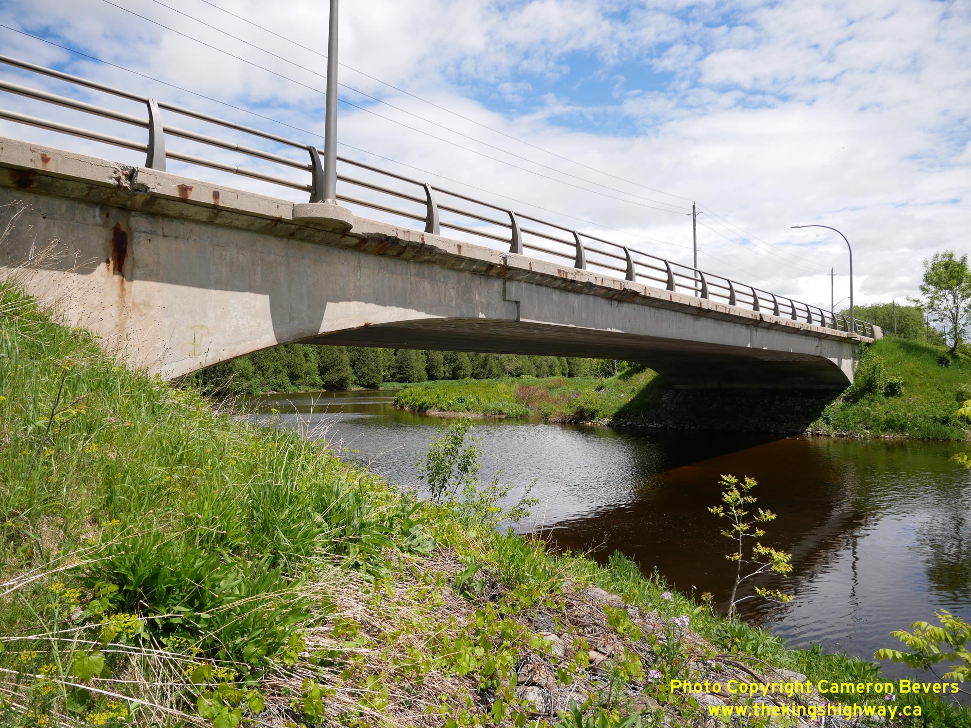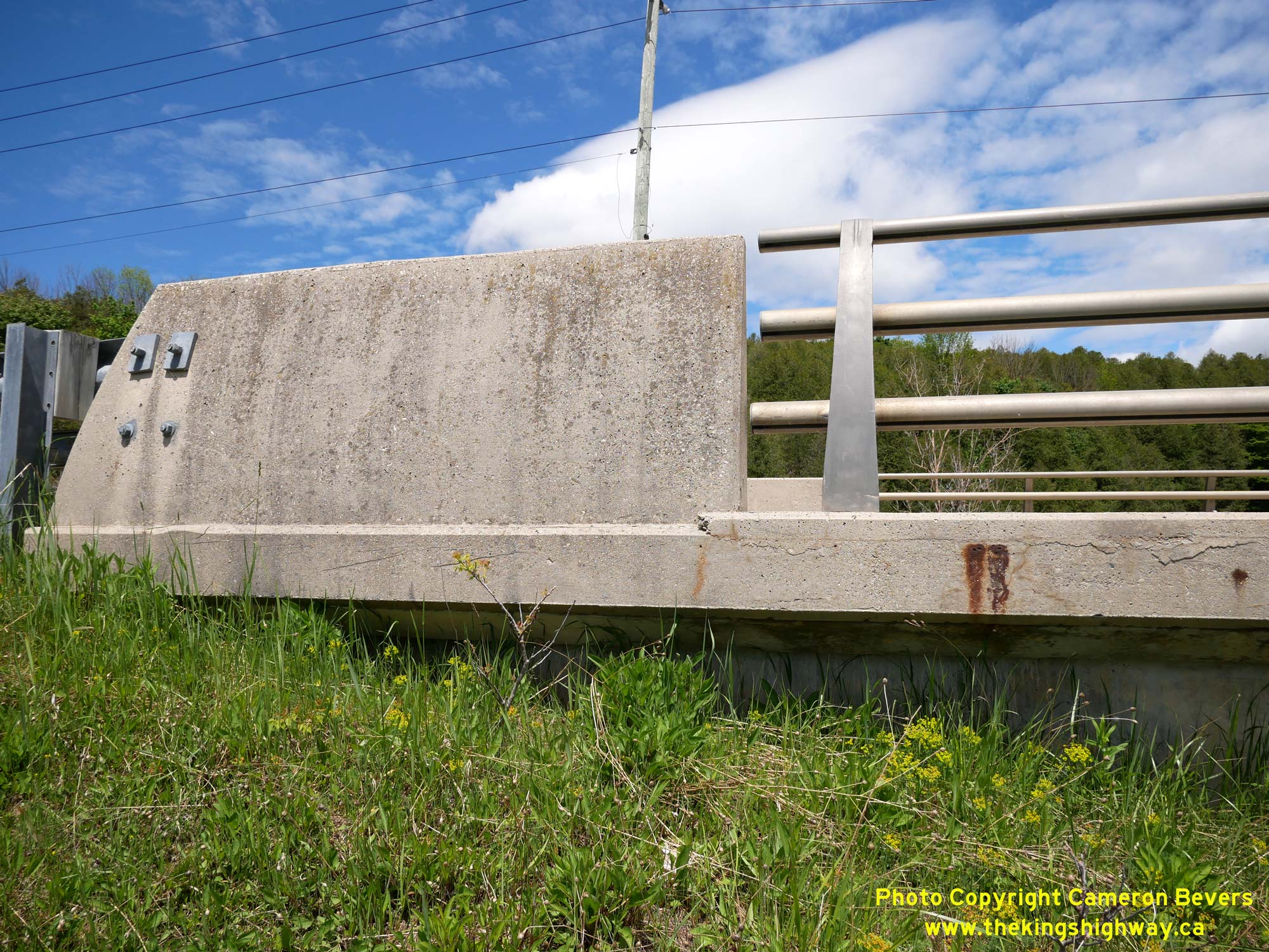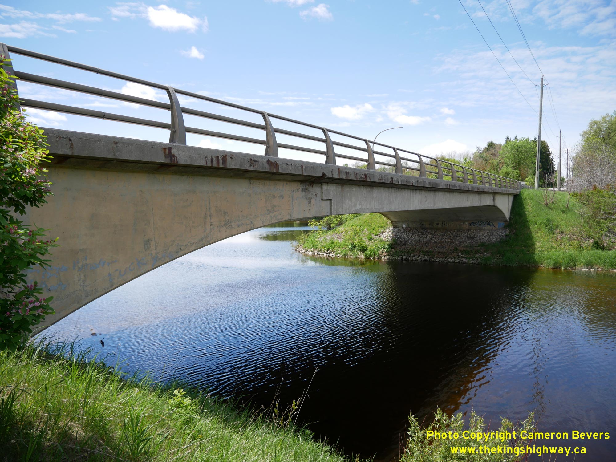 Left - Southern side of the South Saugeen River Bridge on Hwy 89. This two-span concrete slab bridge was completed in 1958. Many of the bridges along Hwy 89