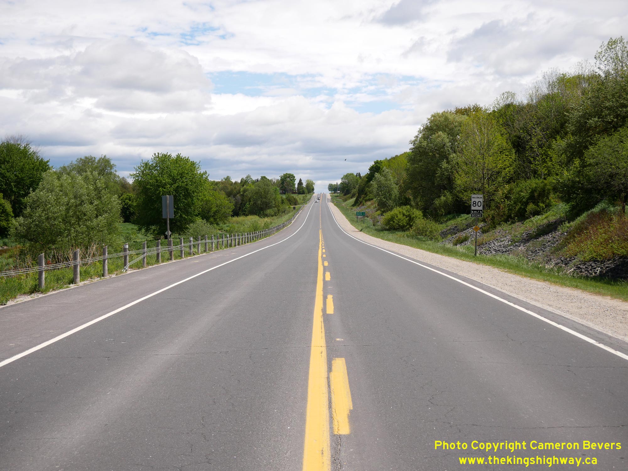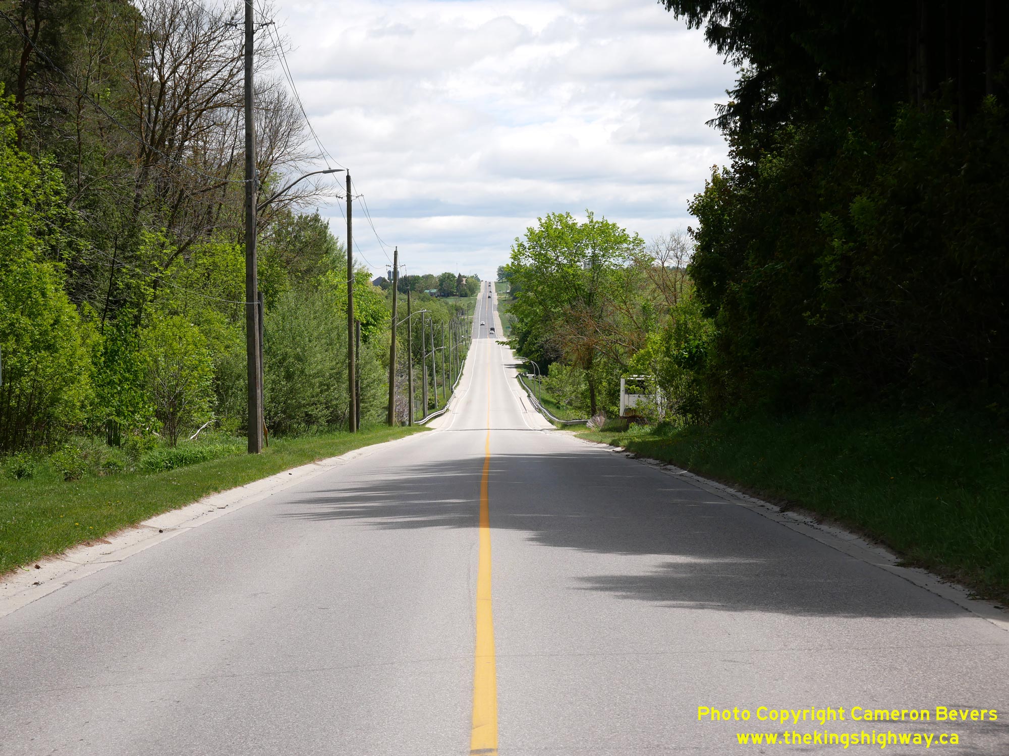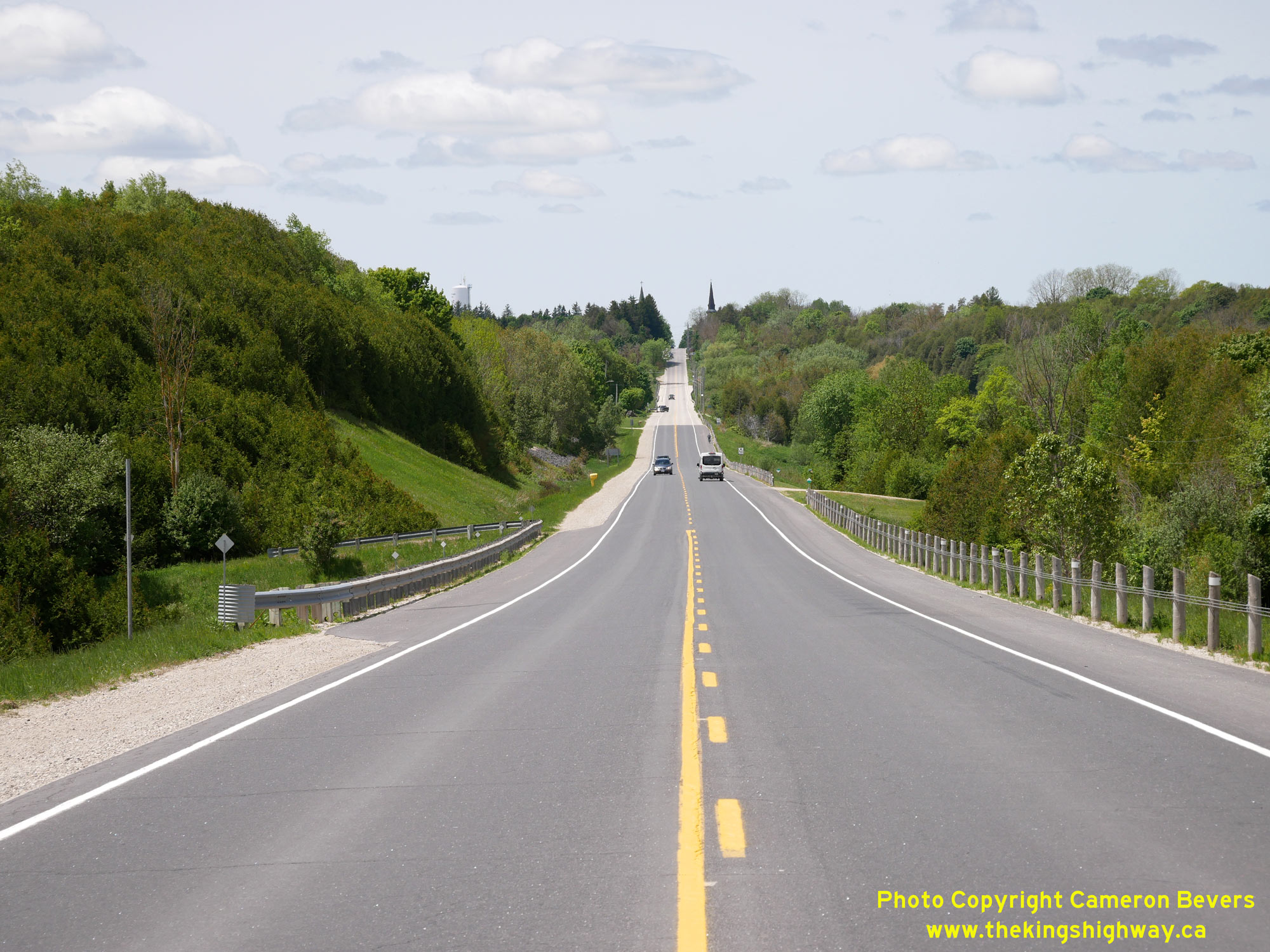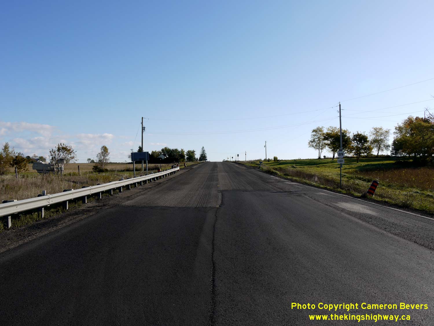 Left - View of Hwy 89 at the Signet Creek Bridge (South Saugeen River Tributary), facing east towards the Wellington County Road 16 Junction. See an