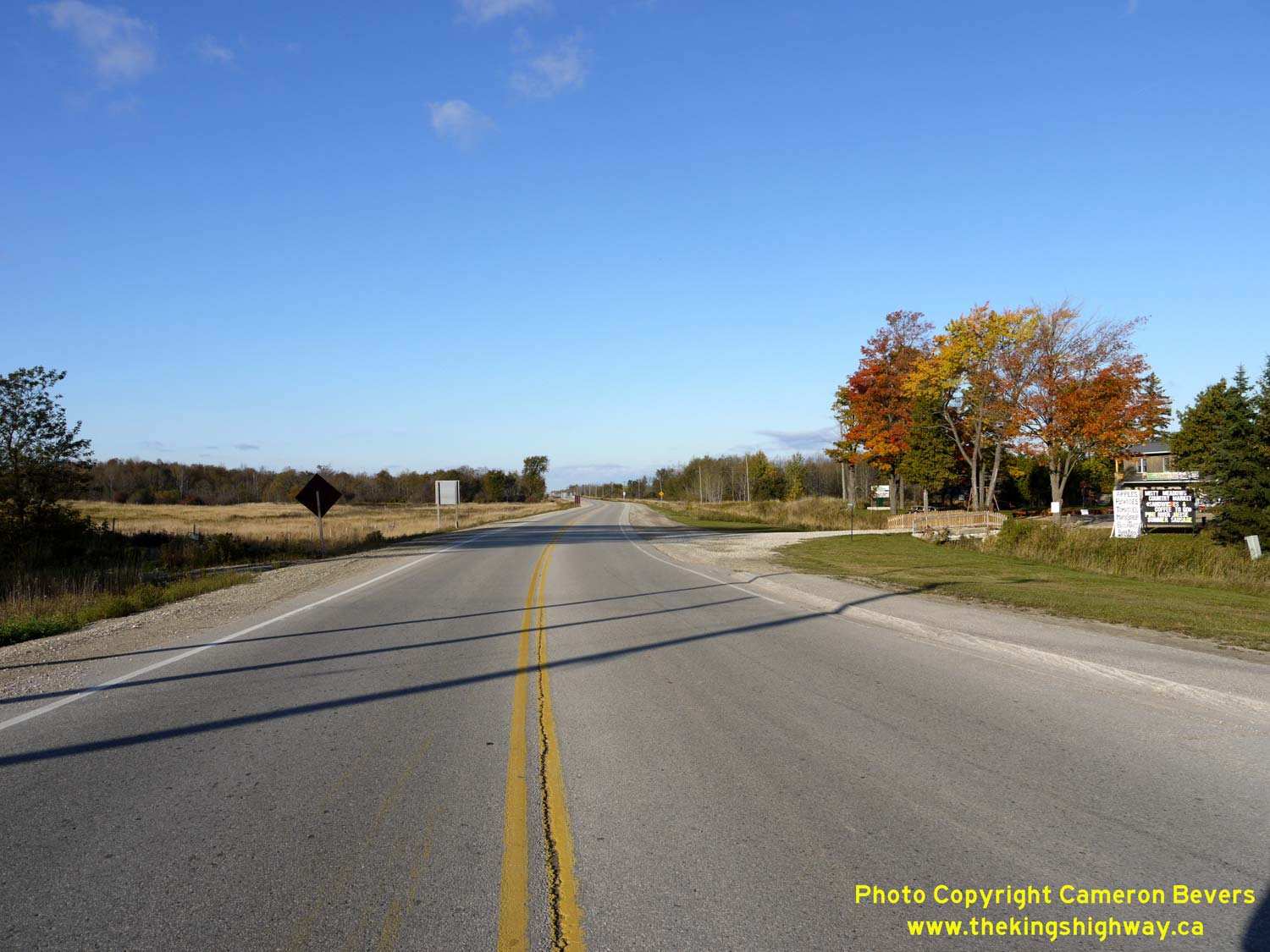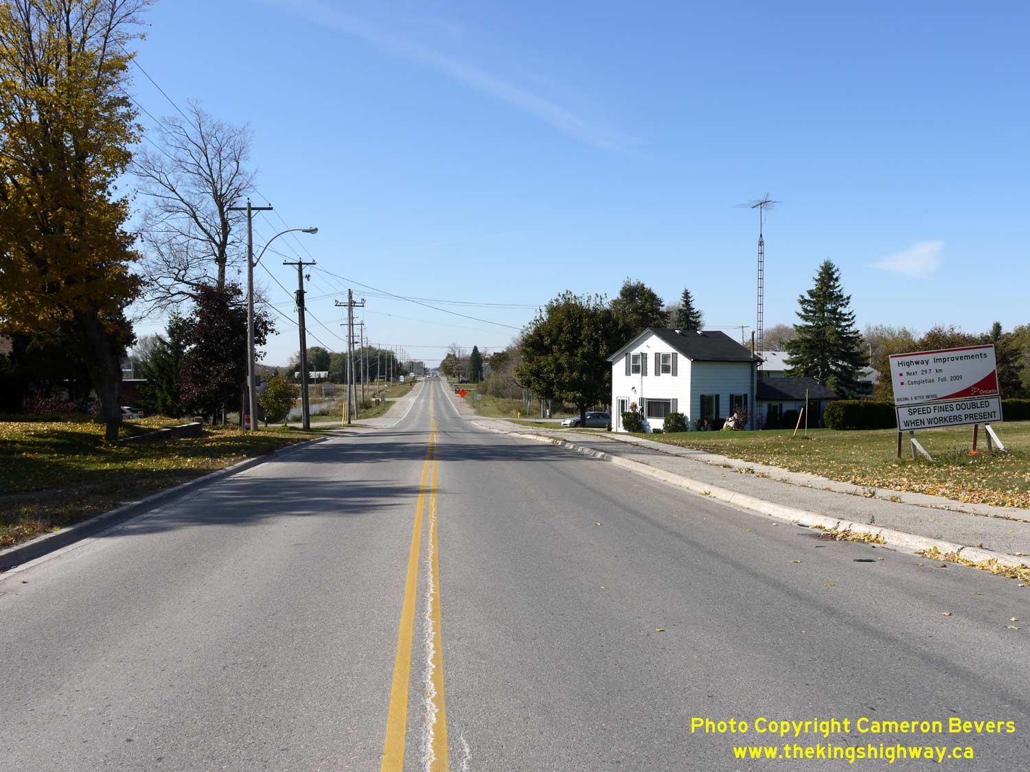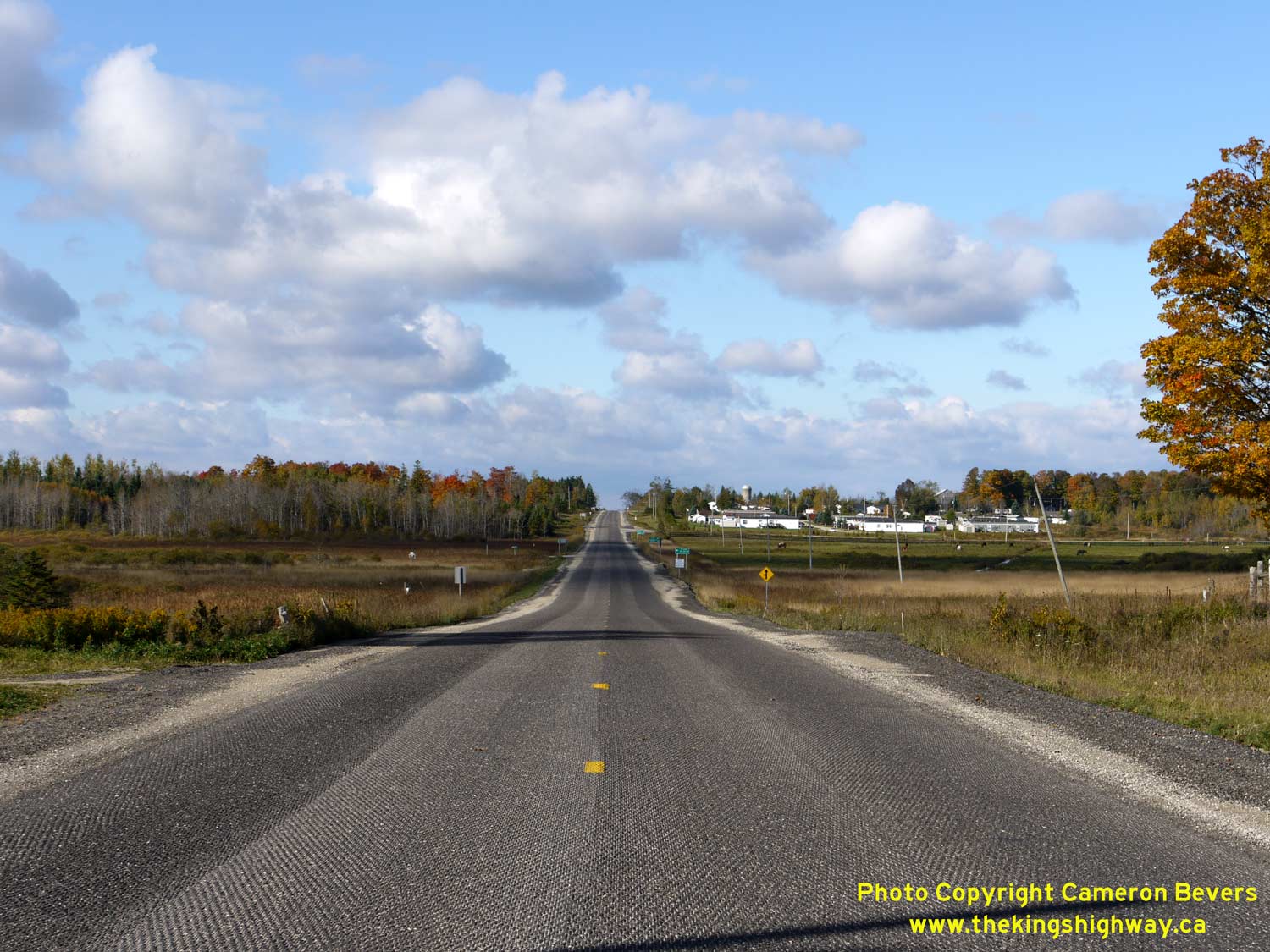 Enlarged Photo Here. (Photograph taken on November 10, 2009 - © Cameron Bevers) Right - Facing west along Hwy 89 approaching the rural hamlet of Conn. See an Enlarged Photo Here. (Photograph taken on November 10, 2009 - © Cameron Bevers)