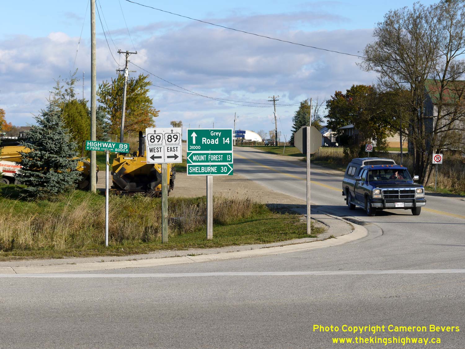 Left - Junction assembly and fingerboard destination guide signs at Hwy 89 and County Road 14 at Conn. Grey County maintains County Road 14 north of Hwy 89,