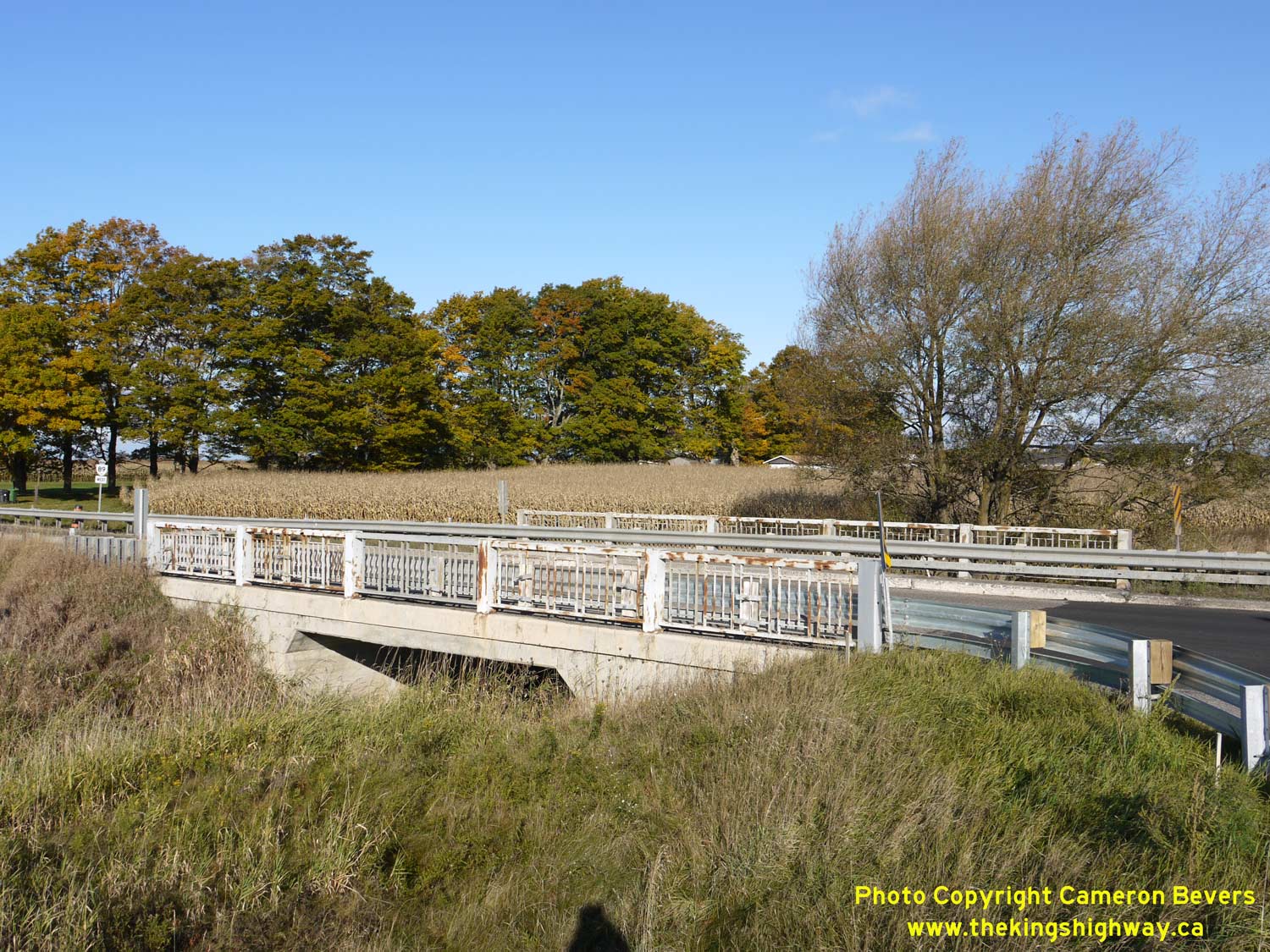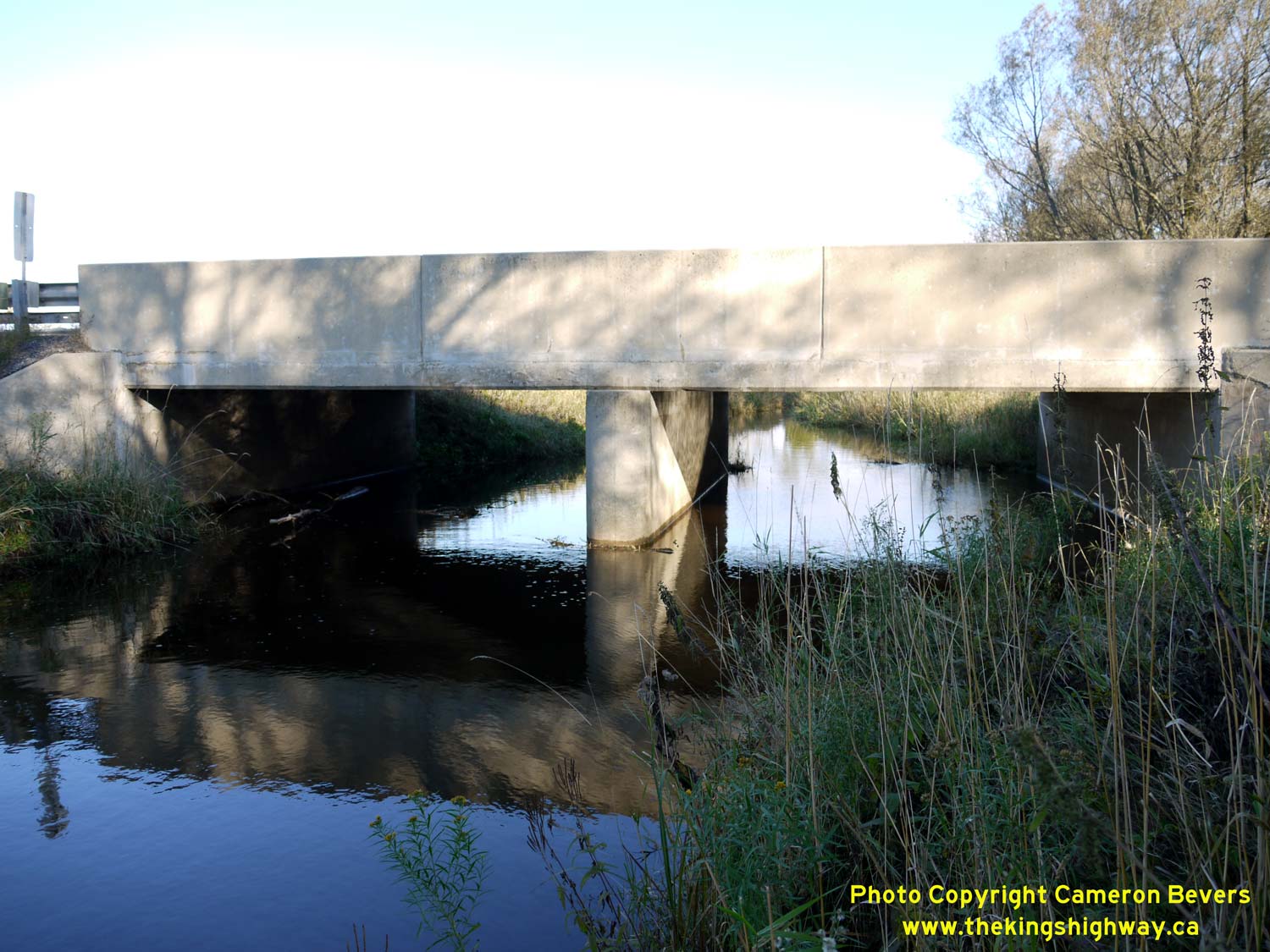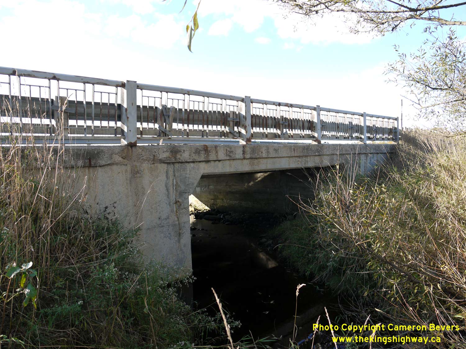 Enlarged Photo Here. (Photograph taken on November 10, 2009 - © Cameron Bevers) Right - Northern side of the Mud Creek Bridge on Hwy 89 west of Shelburne. See an Enlarged Photo Here. (Photograph taken on November 10, 2009 - © Cameron Bevers)