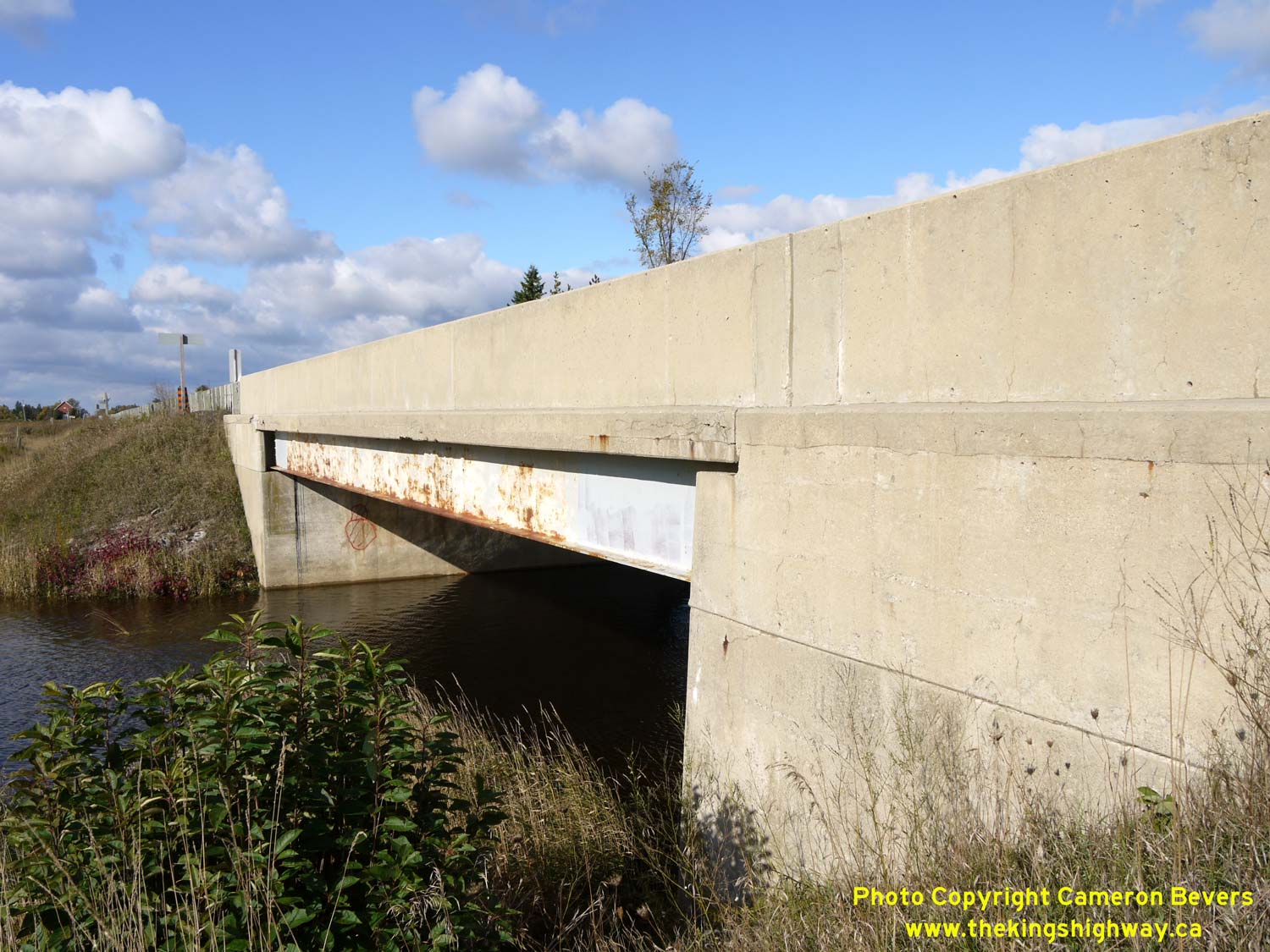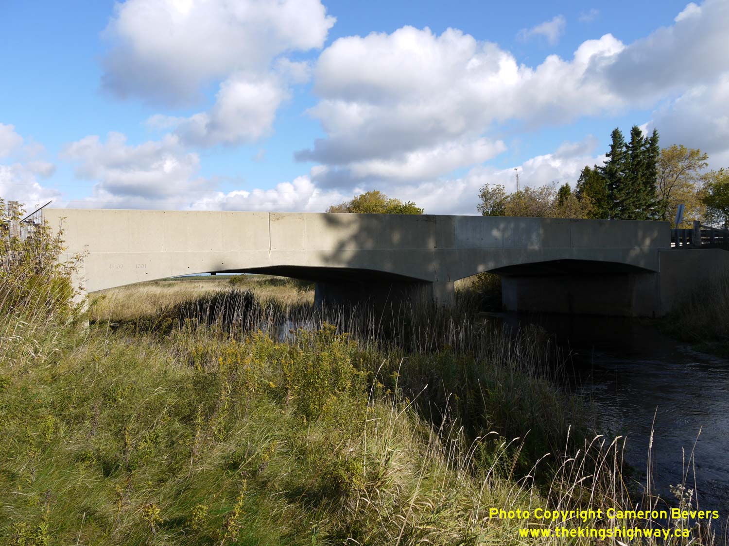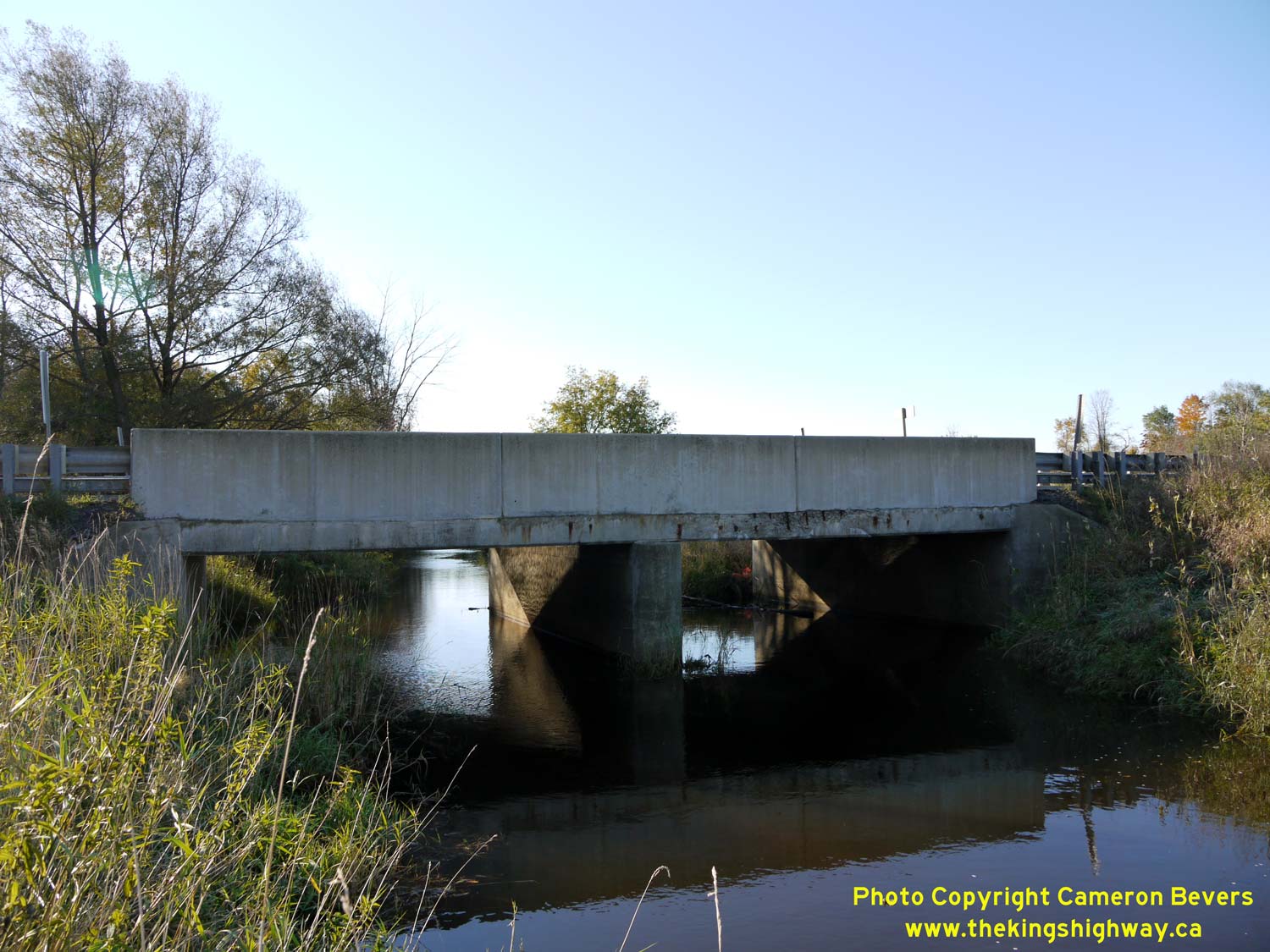 Enlarged Photo Here. (Photograph taken on November 10, 2009 - © Cameron Bevers) Right - Northern side of the Mud Creek Bridge on Hwy 89 west of Shelburne. See an Enlarged Photo Here. (Photograph taken on November 10, 2009 - © Cameron Bevers)