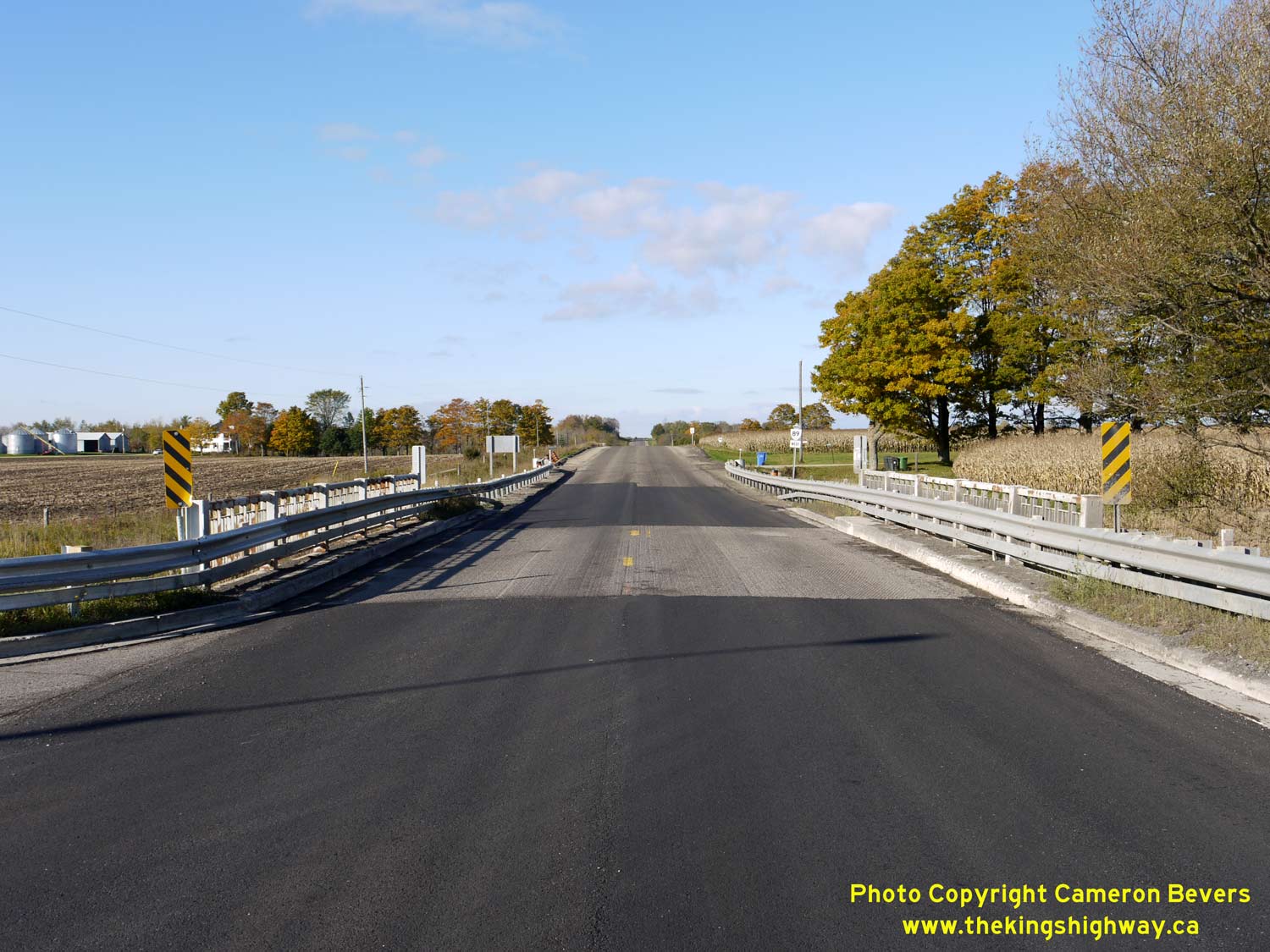 Enlarged Photo Here. (Photograph taken on November 10, 2009 - © Cameron Bevers) Right - Facing west along Hwy 89 towards Mount Forest at the South Saugeen River Bridge. See an Enlarged Photo Here. (Photograph taken on November 10, 2009 - © Cameron Bevers)