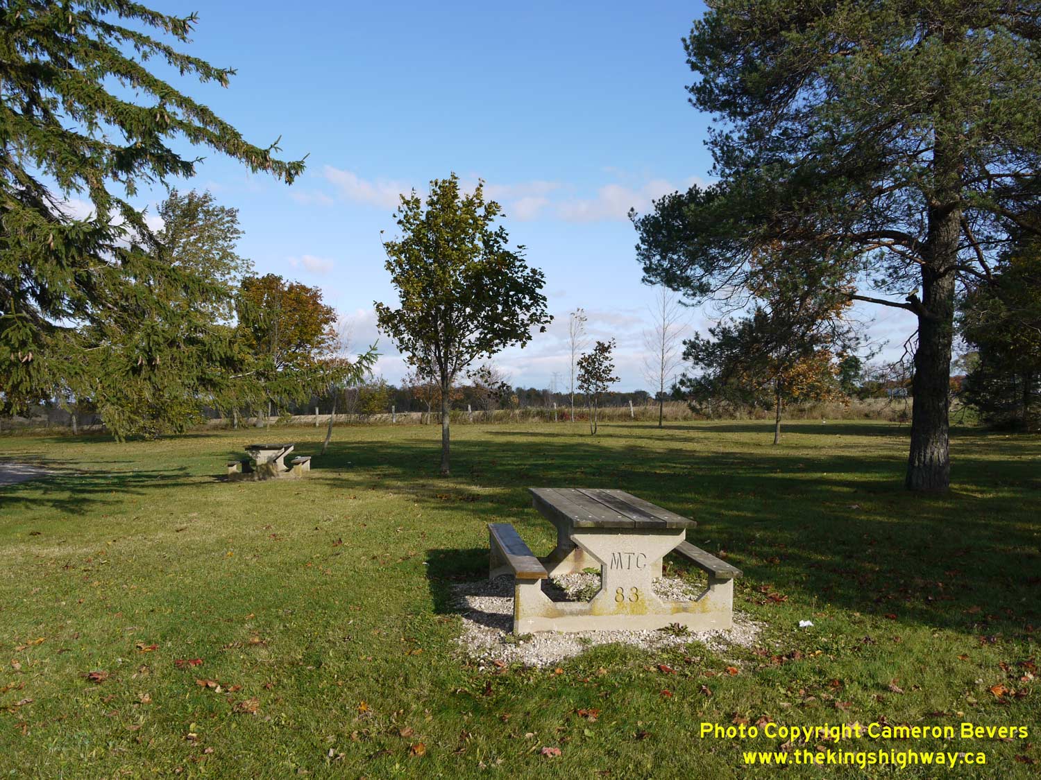 Ontario's roadside parks in the early 1980s. This particular table was installed by the MTC in 1983. At a size of only 1 acre, this is one of the smaller roadside