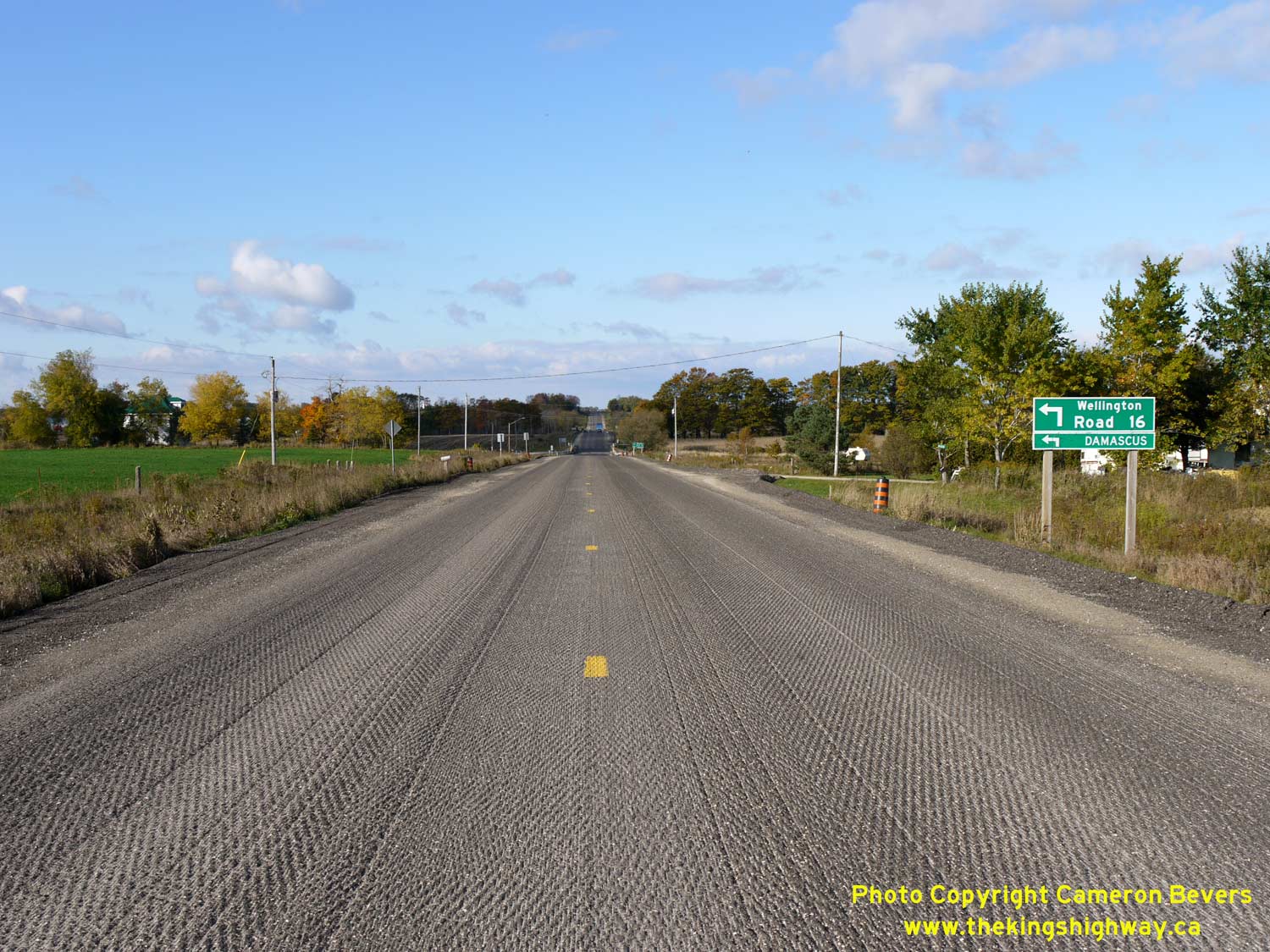 Enlarged Photo Here. (Photograph taken on November 10, 2009 - © Cameron Bevers) Right - Advance guide sign for the Wellington County Road 16 (Damascus Road) Junction on westbound Hwy 89. See an Enlarged Photo Here. (Photograph taken on November 10, 2009 - © Cameron Bevers)