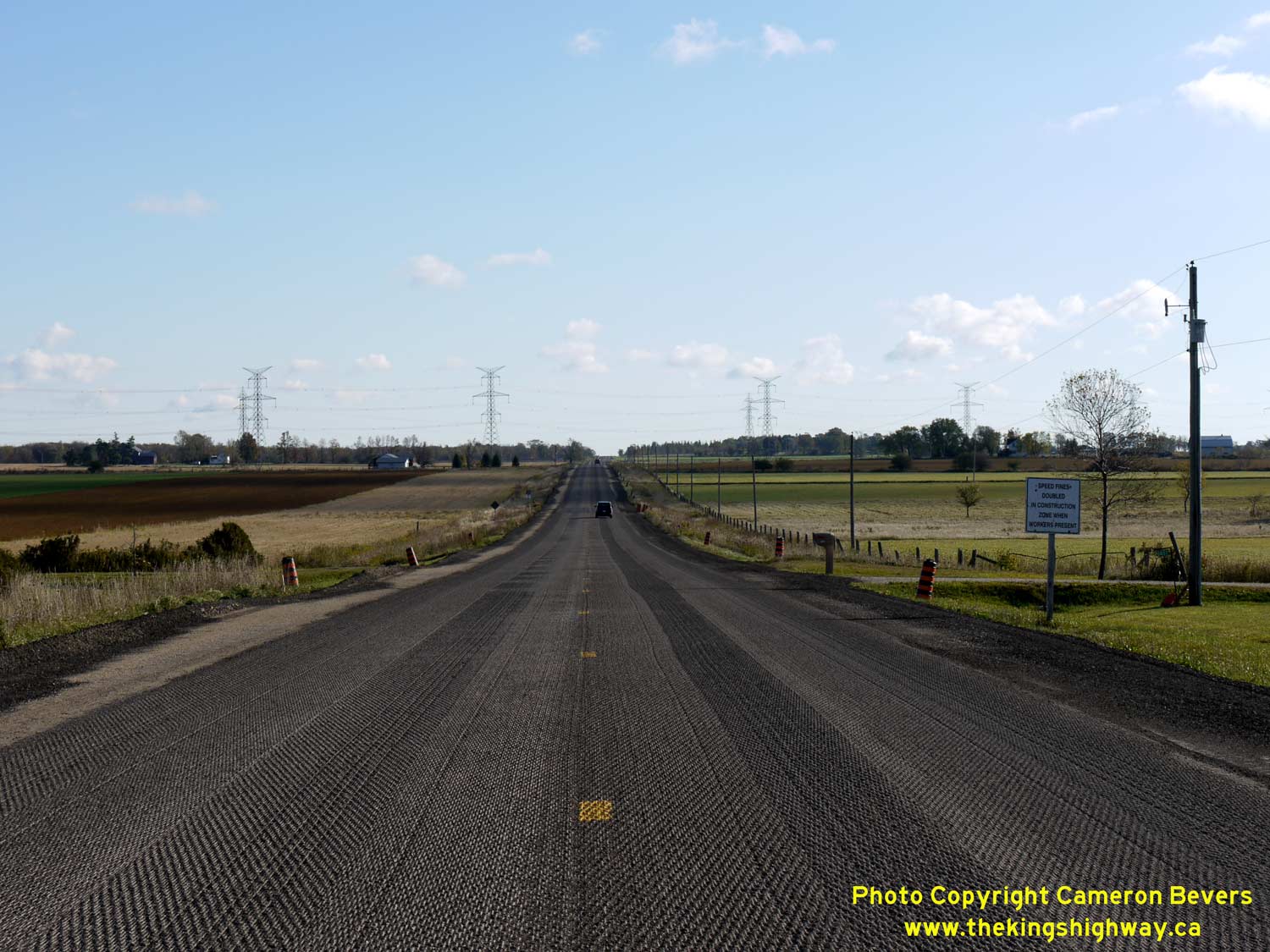 this photo was taken in 2009, during a late-season highway resurfacing project. Although it is unusual to see a highway paving project taking place in November, it