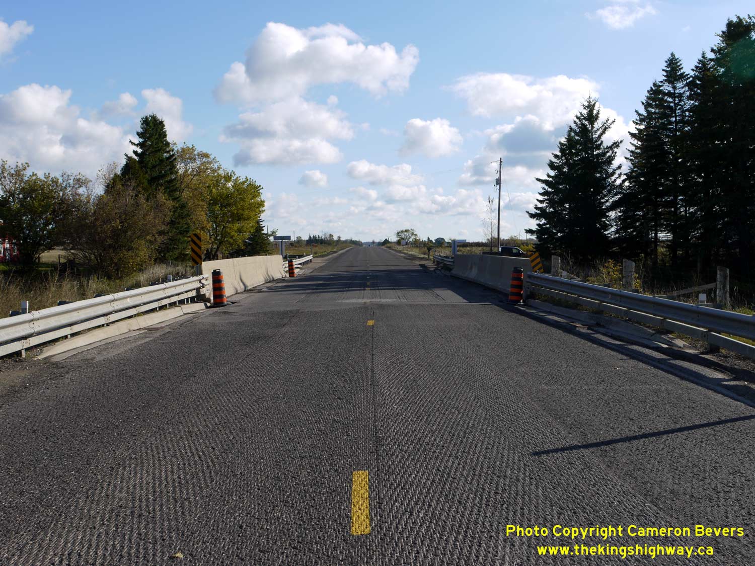 Left - Approaching the South Saugeen River Bridge on Hwy 89, located about 4 km east of Conn. The top-course asphalt had been milled off of Hwy 89 at the time