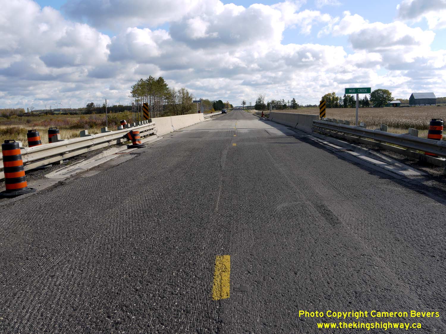 Left - Facing west along Hwy 89 towards Mount Forest at the Mud Creek Bridge. See an