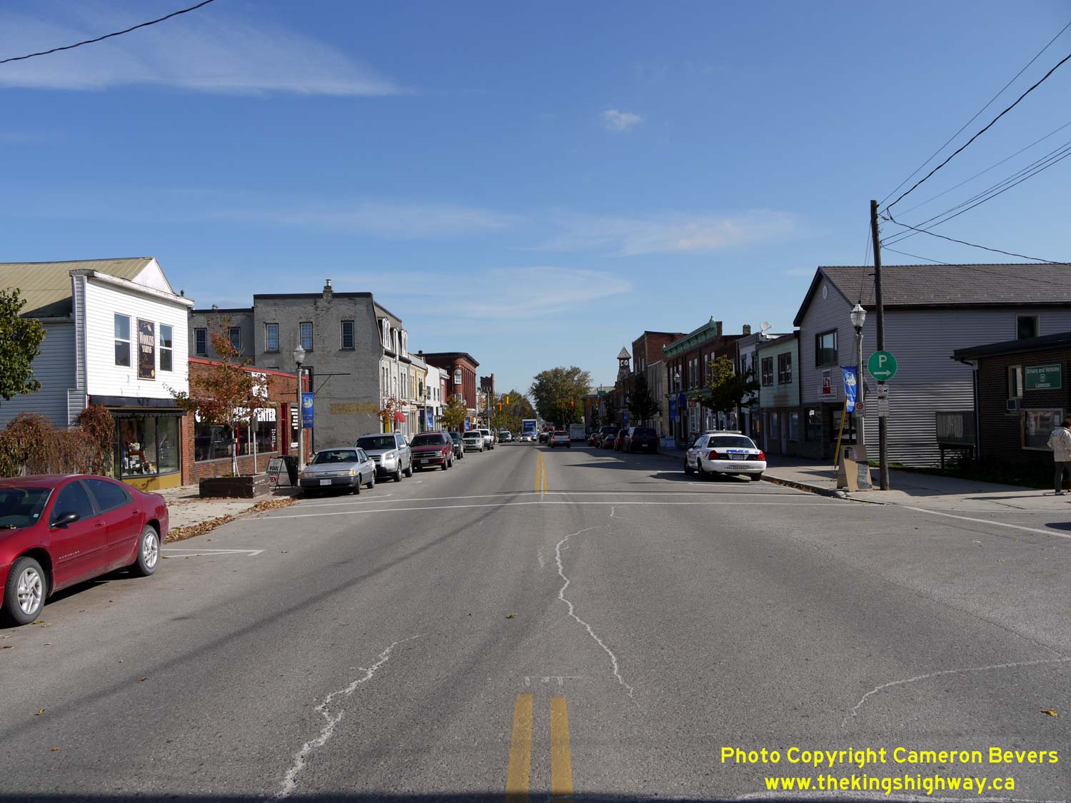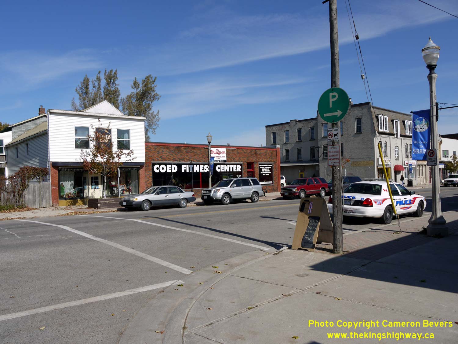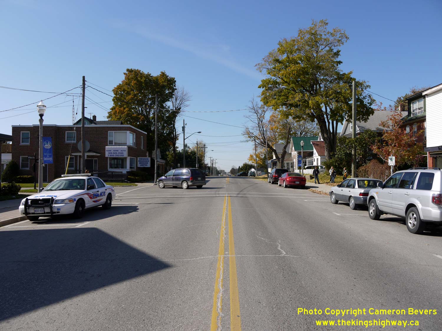 Enlarged Photo Here. (Photograph taken on October 16, 2009 - © Cameron Bevers) Right - Facing east along Main Street (Hwy 89) approaching the Hwy 10 Junction at Owen Sound Street in Shelburne. See an Enlarged Photo Here. (Photograph taken on October 16, 2009 - © Cameron Bevers)