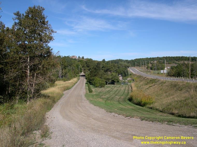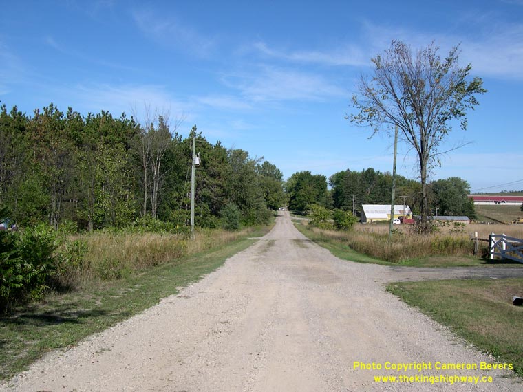 Enlarged Photo here. (Photograph taken on September 8, 2007 - © Cameron Bevers) Right - Old alignment of Hwy 89 west of Alliston at Church Hill. (Photograph taken on December 28, 2003 - © Cameron Bevers)