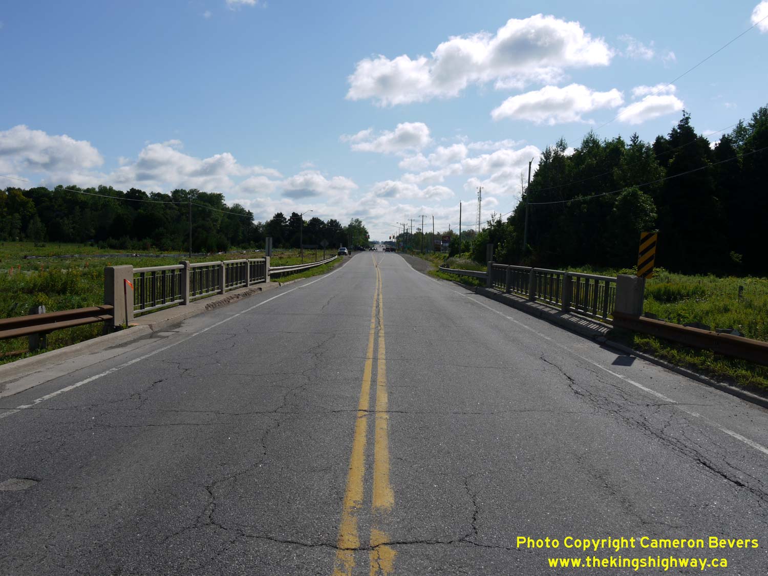 Left - Facing east along Hwy 89 towards the Innisfil Creek Bridge (Glass' Bridge), located about 2 km east of Cookstown. See an