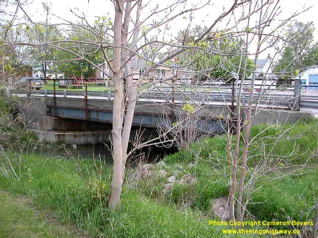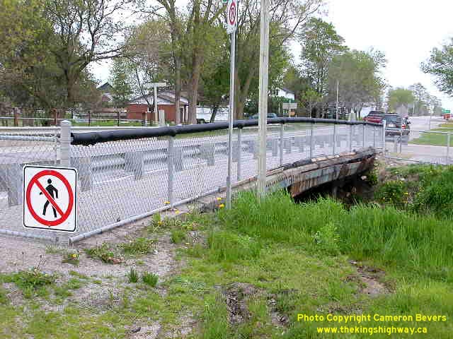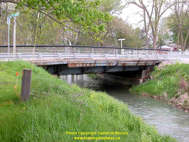 Left - Looking east along Hwy 8 across Liffey Drain. The sidewalk of this structure was closed due to a partial deck failure. (Photograph taken on May 24, 2003 - © Cameron Bevers) Right - Looking west along Hwy 8 across Liffey Drain in Dublin. This structure was replaced in late 2003. (Photograph taken on May 24, 2003 - © Cameron Bevers)
