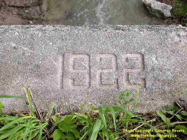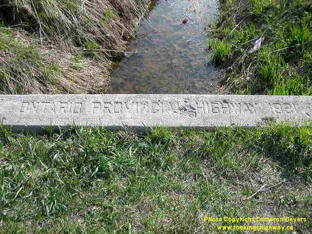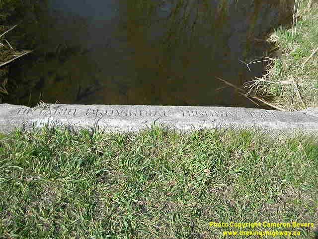Left - Inscription on culvert in Holmesville - "ONTARIO PROVINCIAL HIGHWAY 1921" (Photograph taken on May 4, 2003 - © Cameron Bevers) Right - Inscription on culvert near Clinton - "ONTARIO PROVINCIAL HIGHWAY 1921" (Photograph taken on May 4, 2003 - © Cameron Bevers) ![]()