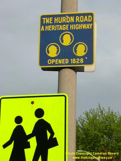 Above - Old Huron Road historical route marker on Hwy 8 at Clinton (Photograph taken on May 24, 2003 - © Cameron Bevers) ![]() ![]()