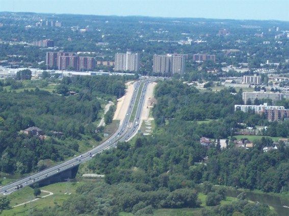 Left - Facing west along Hwy 8 towards the new Flyover from the Conestoga Parkway (Hwy 7). This new two-lane structure relieved a