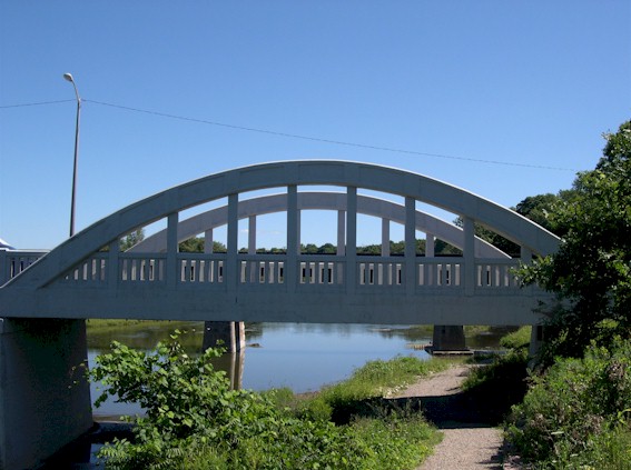 Left - Facing south along Old Hwy 8 across the Grand River Bridge at Freeport (Photograph taken on August 24, 2005 - © Cameron Bevers) Right - Facing north along Old Hwy 8 across the Freeport Bridge. Compare this present day photo with a much earlier photo that I took from roughly the same location back in 1987. (Photograph taken on August 24, 2005 - © Cameron Bevers)