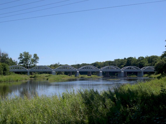 bridge heritage. (Photograph taken on August 24, 2005 - © Cameron Bevers) Right - The tranquil Grand River makes for an attractive setting for the historic Freeport Bridge (Photograph taken on August 24, 2005 - © Cameron Bevers)